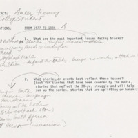 A producers handwritten notes, pertaining to an interview with a Black college student, detail what they thought would be the most important issues to discuss and stories to tell.