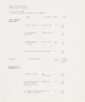 Field Shoot Information Log These are sheets from a much larger log for field shoots. Blackside would keep track of subject, location, film rolls used, as well as which team(s) the interview would be for and the episodes. The alphabetical ordering of the interview subject would also allow for quick reference. -