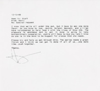 Memo to Staff from Henry Hampton A memo from Henry Hampton about the push to complete the eigth and final episode of Eyes II. -