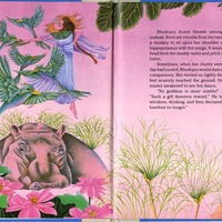 Ruth Heller. 1988. Spread from The Egyptian Cinderella by Shirley Climo. Print. Https://catalog.wustl.Edu/. Harper Collins, Re-Drawn: Pictures, Plots & Portrayals from Special Collections, accessed February 11, 2026, https://digitalexhibits.library.wustl.edu/s/redrawn/item/47792