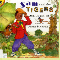 Pinkney, Jerry (illustrator) and Lester, Julius (author). 1995. Sam and the Tigers, Back Cover, 1996. Puffin Books, Re-Drawn: Pictures, Plots & Portrayals from Special Collections, accessed February 10, 2026, https://digitalexhibits.library.wustl.edu/s/redrawn/item/47818