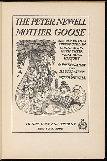 Carolyn Bailey and Peter Newell. 1904. Title Page, The Peter Newell Mother Goose Illustrated by Peter Newell. Rare Book Collections. Henry Holt, Re-Drawn: Pictures, Plots & Portrayals from Special Collections, accessed March 28, 2026, https://digitalexhibits.library.wustl.edu/s/redrawn/item/47918