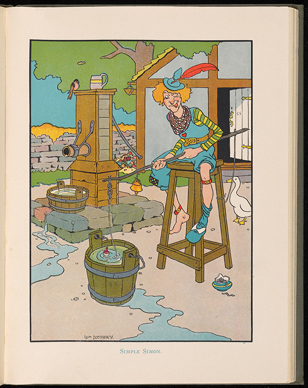 William Donahey. 1920. Simple Simon from The Children’s Mother Goose, Illustrated by William Donahey. Rare Book Collections. Reilly & Lee Co, Re-Drawn: Pictures, Plots & Portrayals from Special Collections, accessed March 28, 2026, https://digitalexhibits.library.wustl.edu/s/redrawn/item/47926