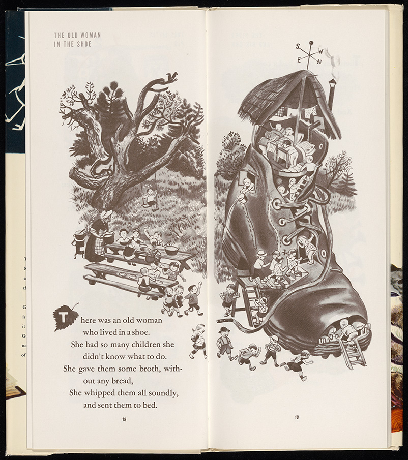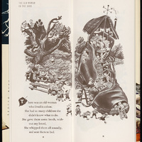 Rojankovsky, Feodor Stepanovich. 1941. Old Woman in a Shoe from The Tall Book of Mother Goose, Illustrated by Feodor Rojankovsky. Rare Book Collections. Harper & Row, Re-Drawn: Pictures, Plots & Portrayals from Special Collections, accessed March 28, 2026, https://digitalexhibits.library.wustl.edu/s/redrawn/item/47927