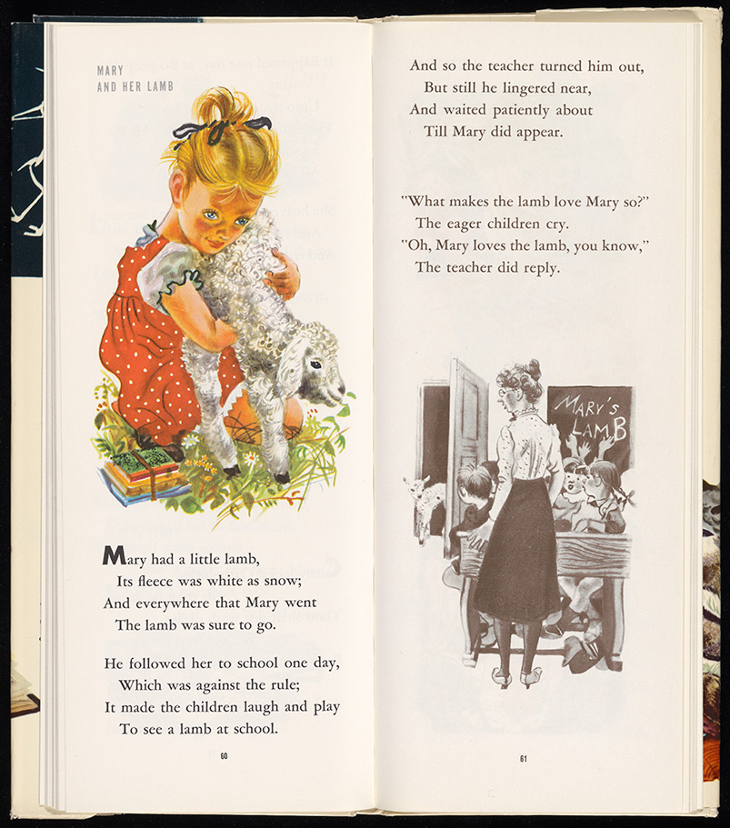 Rojankovsky, Feodor Stepanovich. 1941. Mary Had a Little Lamb from The Tall Book of Mother Goose, Illustrated by Feodor Rojankovsky. Rare Book Collections. Harper & Row, Re-Drawn: Pictures, Plots & Portrayals from Special Collections, accessed February 11, 2026, https://digitalexhibits.library.wustl.edu/s/redrawn/item/47933