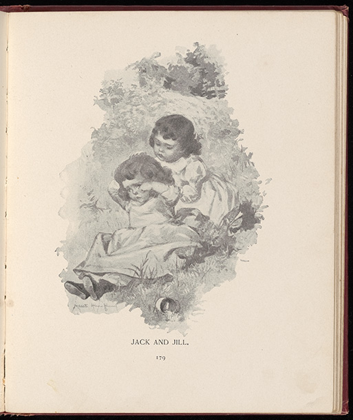 Maud Humphrey, Edith M. Thomas, Elizabeth S. Tucker and Helen Gray Cone. 1893. Jack and Jill from A Treasury of Stories, Jingles and Rhymes Illustrated by Maud Humphrey. Rare Book Collections. Frederick A. Stokes Company, Re-Drawn: Pictures, Plots & Portrayals from Special Collections, accessed March 28, 2026, https://digitalexhibits.library.wustl.edu/s/redrawn/item/47940