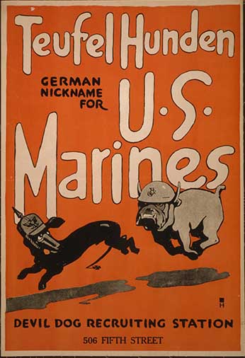 Teufel Hunden. n.d. Library of Congress Prints and Photographs Division, Re-Drawn: Pictures, Plots & Portrayals from Special Collections, accessed February 11, 2026, https://digitalexhibits.library.wustl.edu/s/redrawn/item/48061