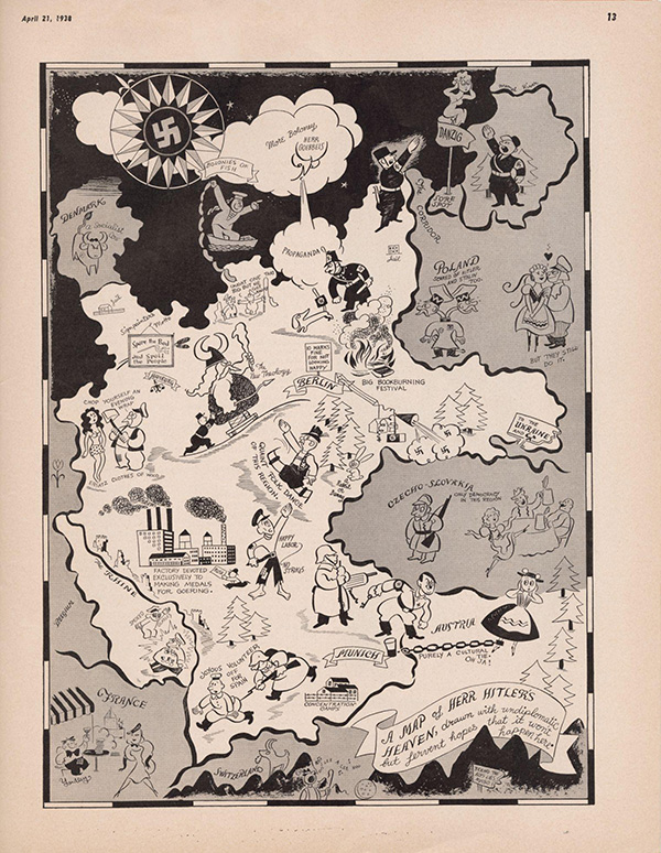 Yardley, Richard. 1937. A Map of Herr Hitler’s Heaven - Drawn With Undiplomatic But Fervant Hopes That It won’t Happen Here.. Cornell University Library, Re-Drawn: Pictures, Plots & Portrayals from Special Collections, accessed February 11, 2026, https://digitalexhibits.library.wustl.edu/s/redrawn/item/48071