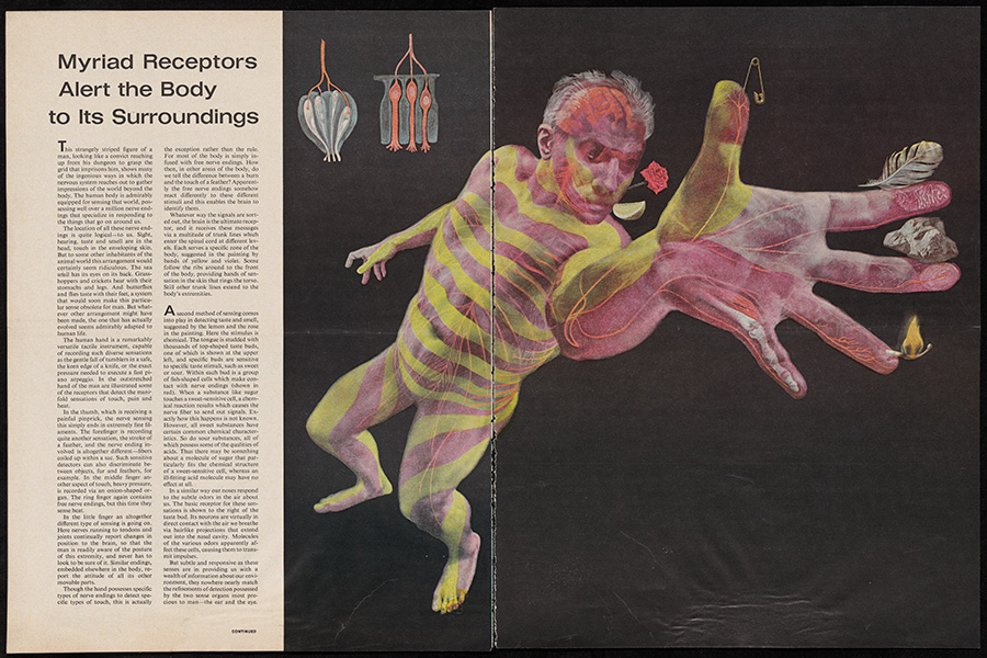 Lidov, Arthur Herschel. n.d. Myriad Receptors Alert the Body to Its Surroundings, Re-Drawn: Pictures, Plots & Portrayals from Special Collections, accessed February 10, 2026, https://digitalexhibits.library.wustl.edu/s/redrawn/item/48076