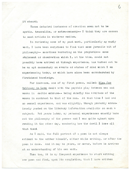 First three pages of "A Poem Happens to Me" essay, written in 1938 and published posthumously, in 1998. The draft is seven pages total.