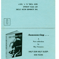 Swenson, May. 1965. “Poem Selections for ‘Half Sun Half Sleep’”. "Dear Elizabeth" Drafts, May Swenson in the Modern Literature Collection, accessed March 28, 2026, https://digitalexhibits.library.wustl.edu/s/swenson/item/26501