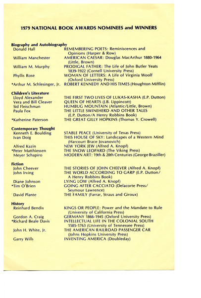National Book Awards Foundation. 1979. “Thirtieth Annual National Book Awards”. Fact Sheet for the 1959 National Book Awards Ceremony, May Swenson in the Modern Literature Collection, accessed April 18, 2026, https://digitalexhibits.library.wustl.edu/s/swenson/item/27392