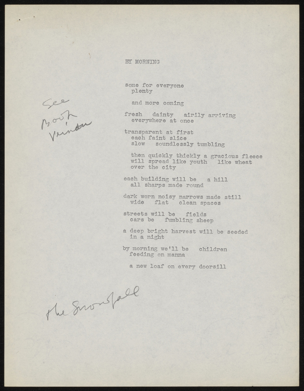Swenson, May, and The New Yorker. 1953. “By Morning Snow by Morning Drafts”. The New Yorker, May Swenson in the Modern Literature Collection, accessed April 20, 2026, https://digitalexhibits.library.wustl.edu/s/swenson/item/59848