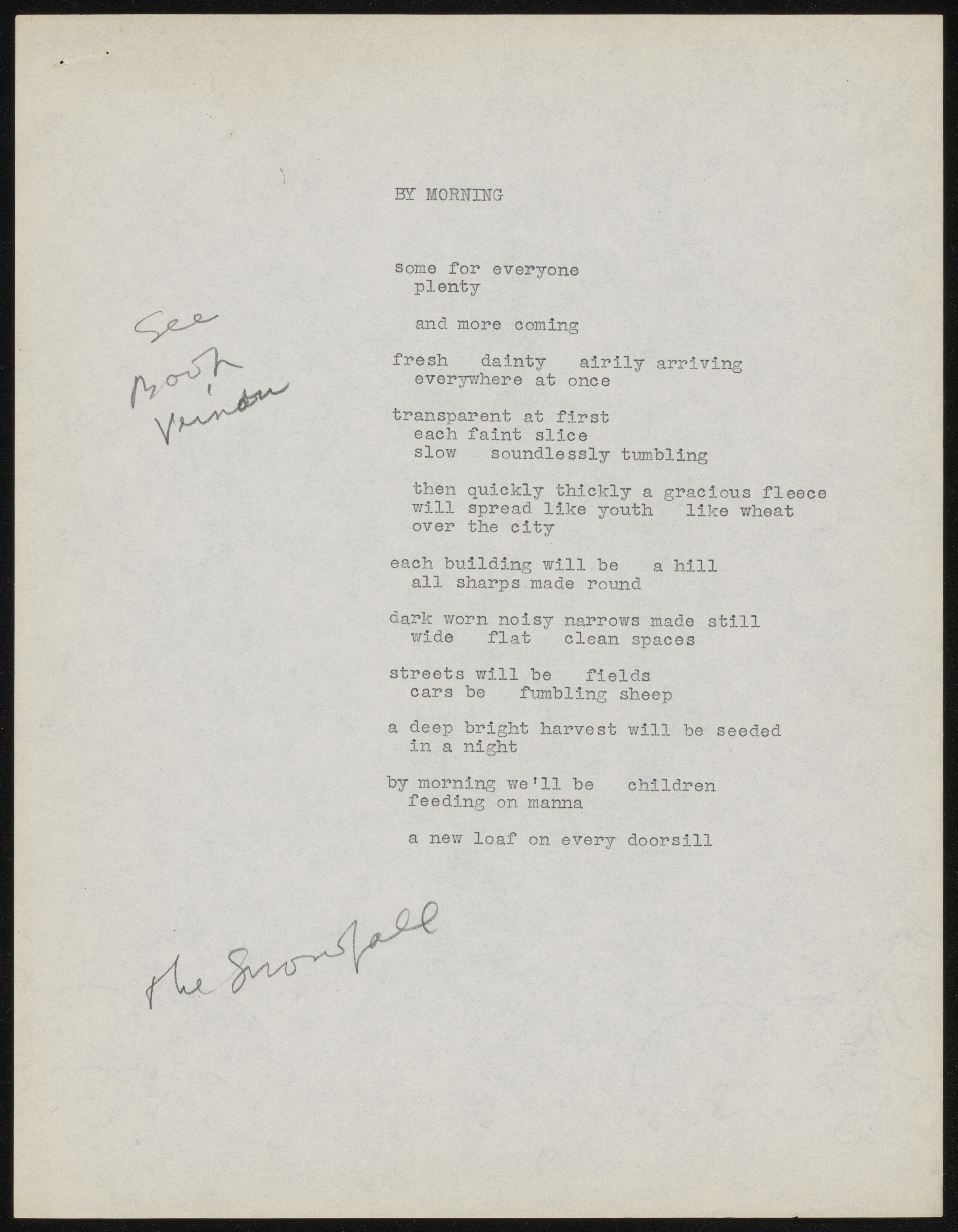 By Morning / Snow by Morning drafts