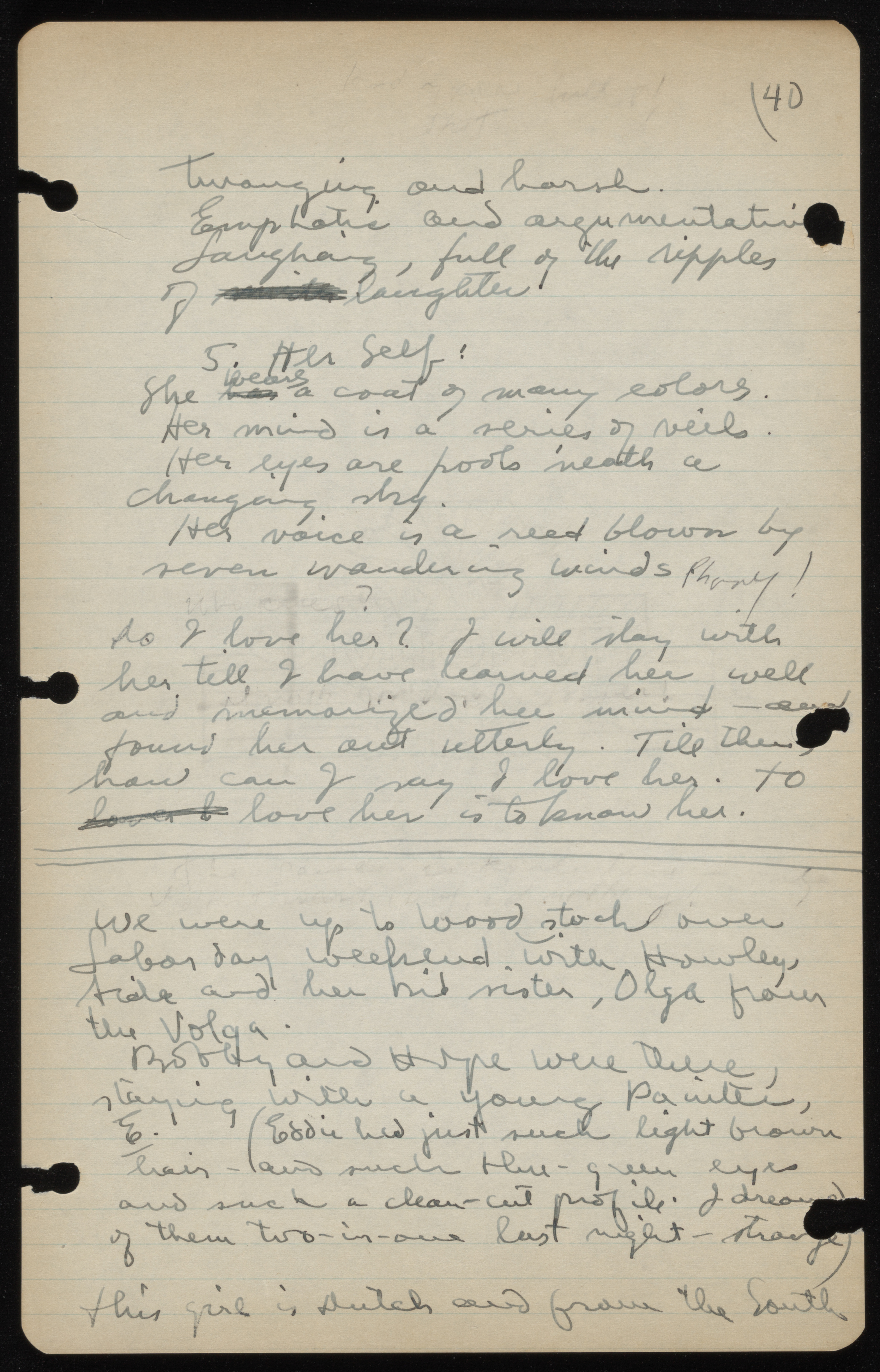 This entry begins with a domestic scene depicting Swenson's partner Anca Vrbovska and their new cat. Then Swenson notes the war in Europe that has just started, and the political strife at home too. While they currently both work for the Federal Writers Project, they expect Anca to lose her job soon (and May would as well). Swenson then muses on the ways she is attracted to Anca, but still stops short of saying she is in love with her yet.
