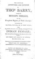 A particular account of his escape, accompanied by an Indian female; the extraordinary hardships they encountered in their flight; and their safe arrival in London, December the 6th, 1799. Written by himself. This is a second edition of a captivity narrative that is probably fictitious. -