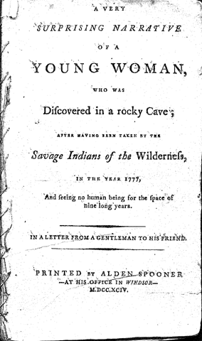 - A very surprising narrative of a young woman, who had been taken by Indians in 1777
