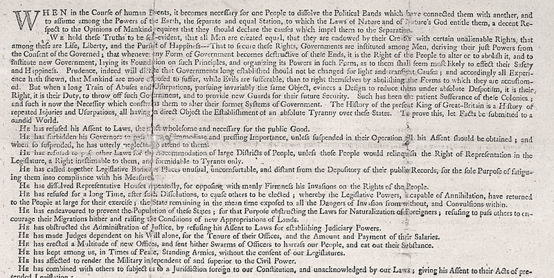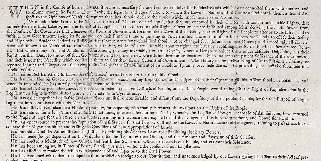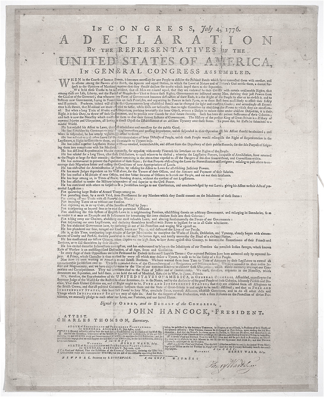 Jefferson, Thomas, 1743-1826; Ward, Henry, 1732-1797; Hancock, John, 1737-1793; Thomson, Charles, 1729-1824; United States. Continental Congress; Rhode Island. General Assembly. 1775. “The Declaration of Independence”. Newport [R.I.] : Printed by S. Southwick, The Declaration of Independence, accessed February 10, 2026, https://digitalexhibits.library.wustl.edu/s/the-declaration-of-independence/item/883