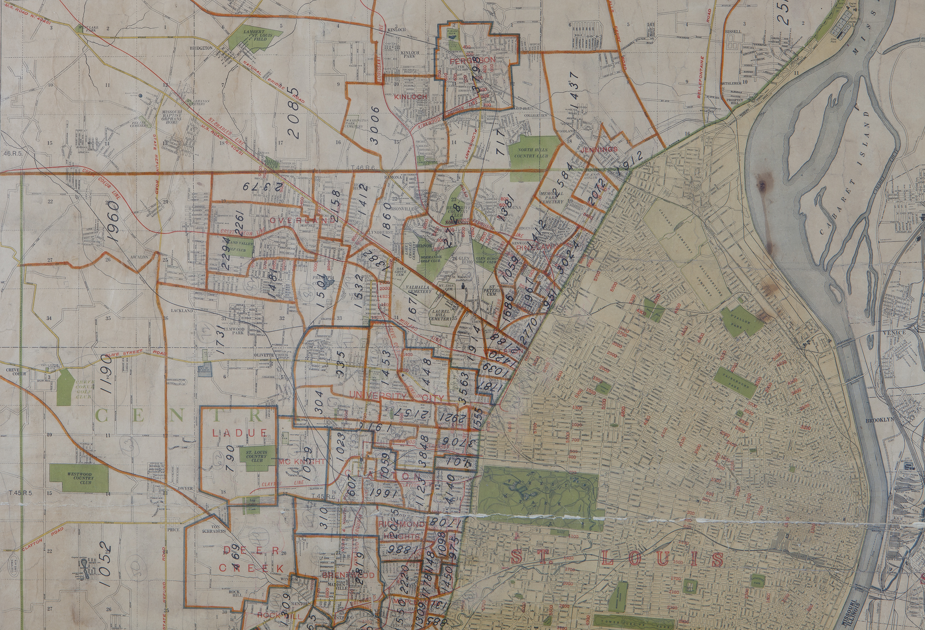 - Washington Park Cemetery appears on Natural Bridge, approximately halfway between Normandie country club and Lambert St. Louis Field. Courtesy of Missouri History Museum.