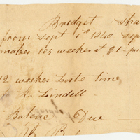 Record of wages accrued by enslaved person, Bridgette, for Henry Shaw