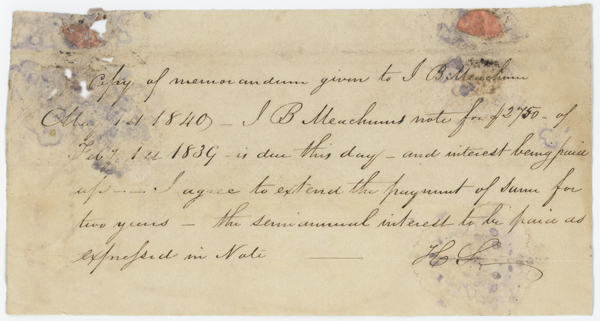 Memorandum for a Two-year extension of the loan agreement between John Berry Meachum and Henry Shaw, dated 1 May 1840