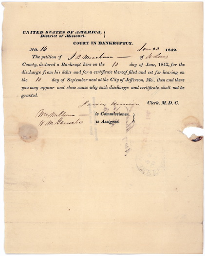 John Berry Meachum declares bankruptcy, dated 10 June 1842