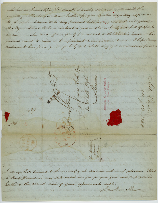 Caroline Shaw. 1844. “Letter from Caroline Shaw to Henry Shaw.”, WashU & Slavery, accessed February 11, 2026, https://digitalexhibits.library.wustl.edu/s/washu-slavery/item/59515