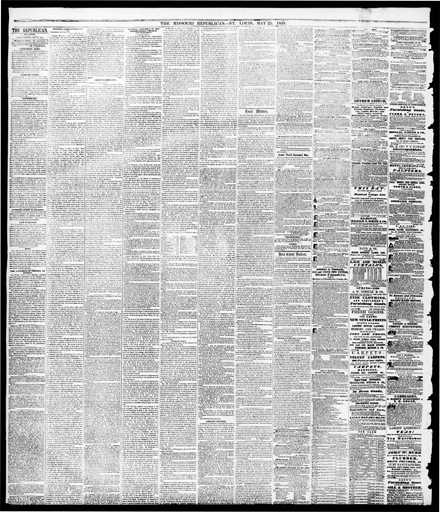 Missouri Republican. 1855. “The $300 Reward Ad Placed by Henry Shaw for Jim, a Person Enslaved by Shaw Who Escaped”. Newspaper, Missouri Republican, WashU & Slavery, accessed February 11, 2026, https://digitalexhibits.library.wustl.edu/s/washu-slavery/item/59619