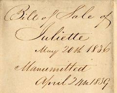 - Bill of sale for purchase of female enslaved person, Juliette, by Henry Shaw in 1836.