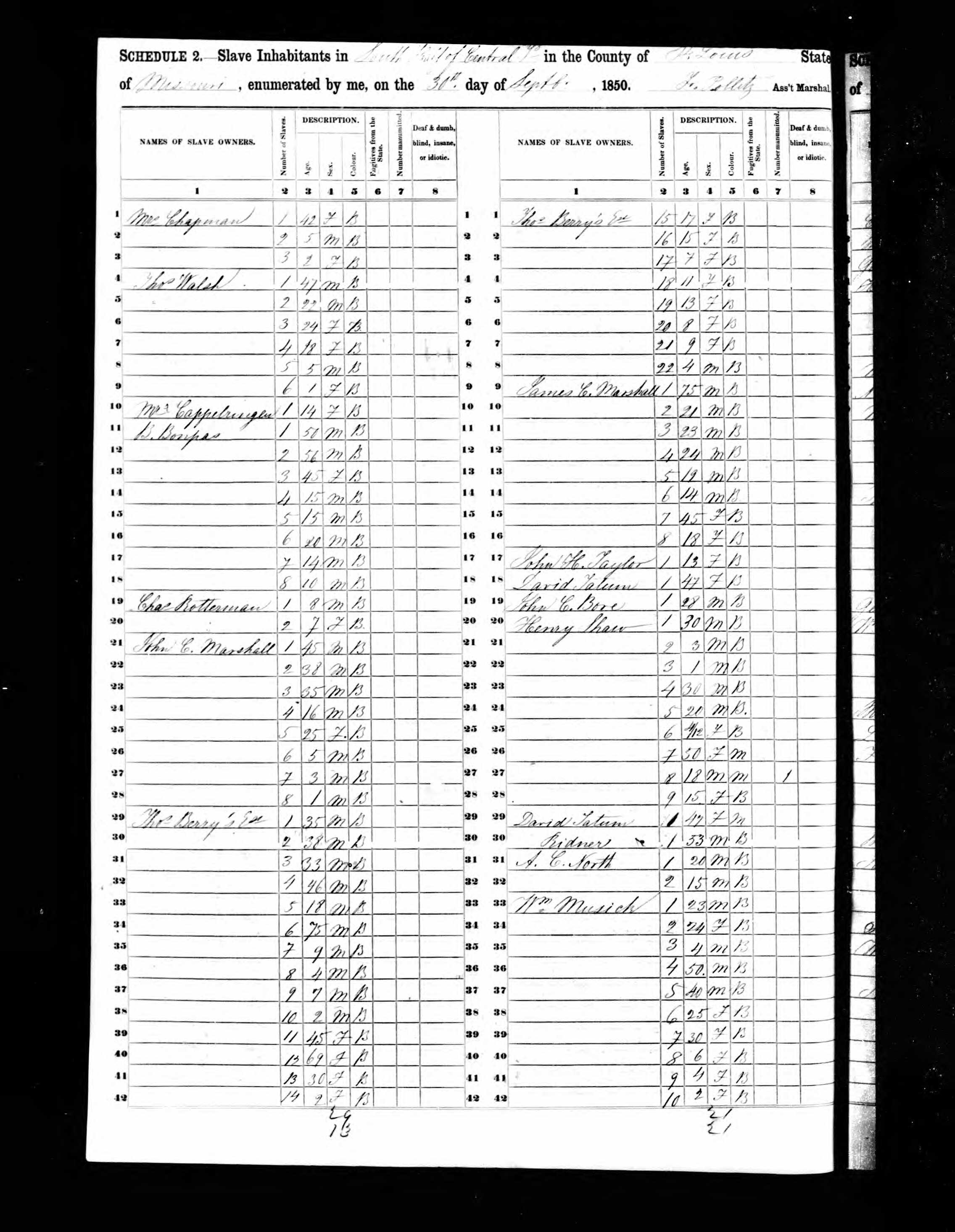 - 1850 Slave Inhabitant Schedule, St. Louis Central South Half, Henry Shaw