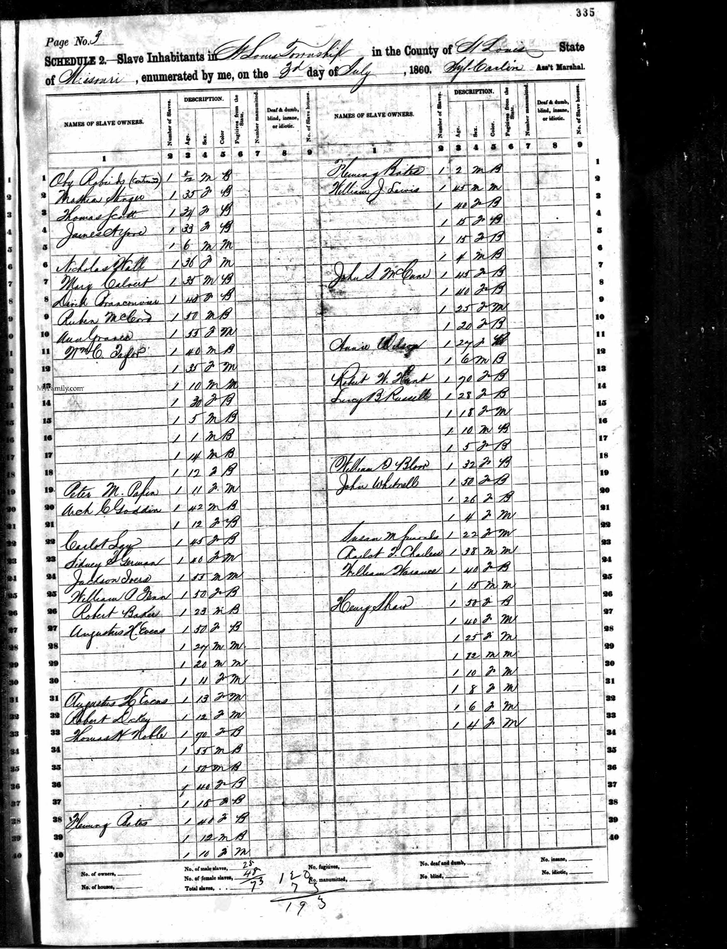- 1860 Slave Inhabitant Schedule, St. Louis Township, Henry Shaw