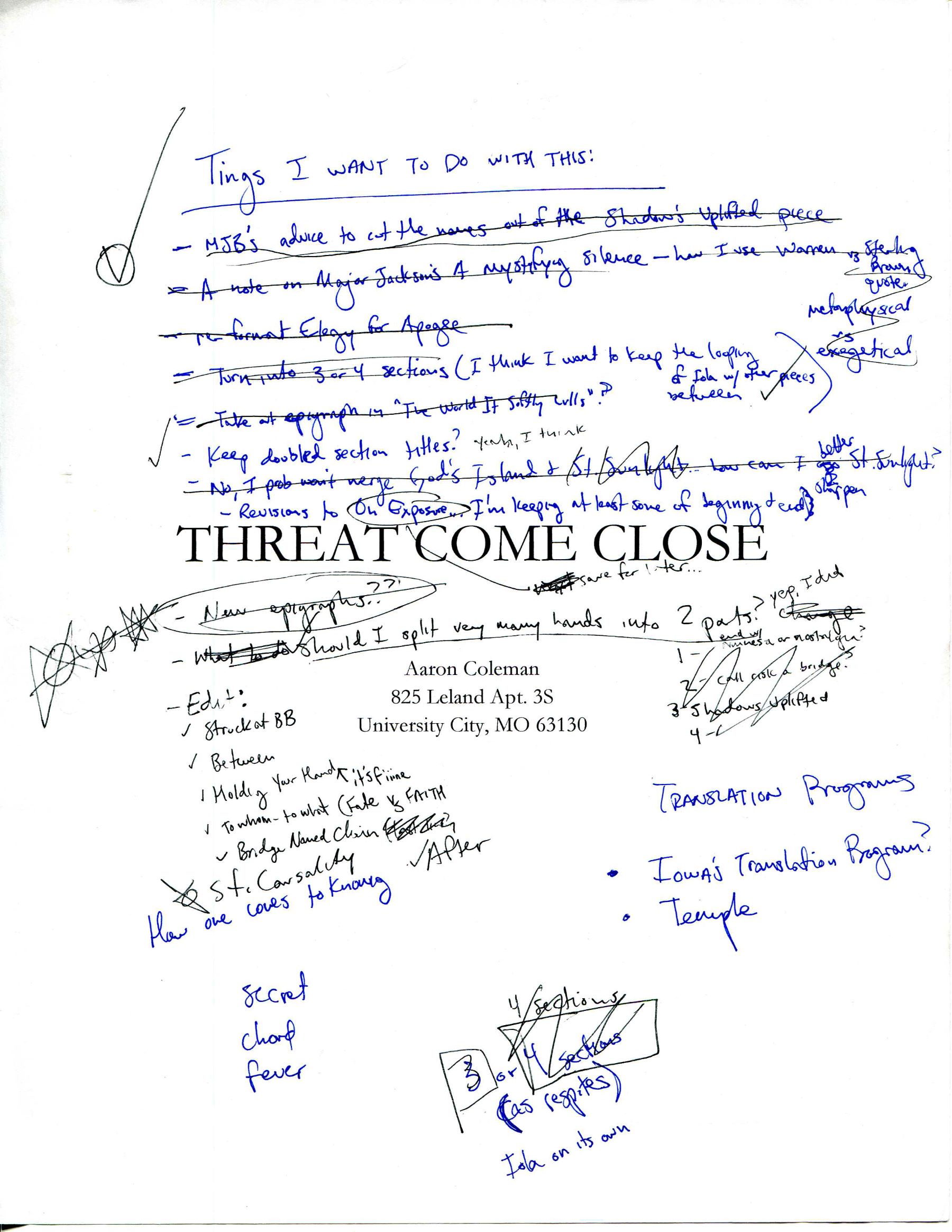 Coleman, Aaron. “Threat Come Close Manuscript”. Paper. Threat Come Close Manuscript, Wherein I am: Highlights from the Aaron Coleman Papers, accessed February 11, 2026, https://digitalexhibits.library.wustl.edu/s/whereiniam/item/45250