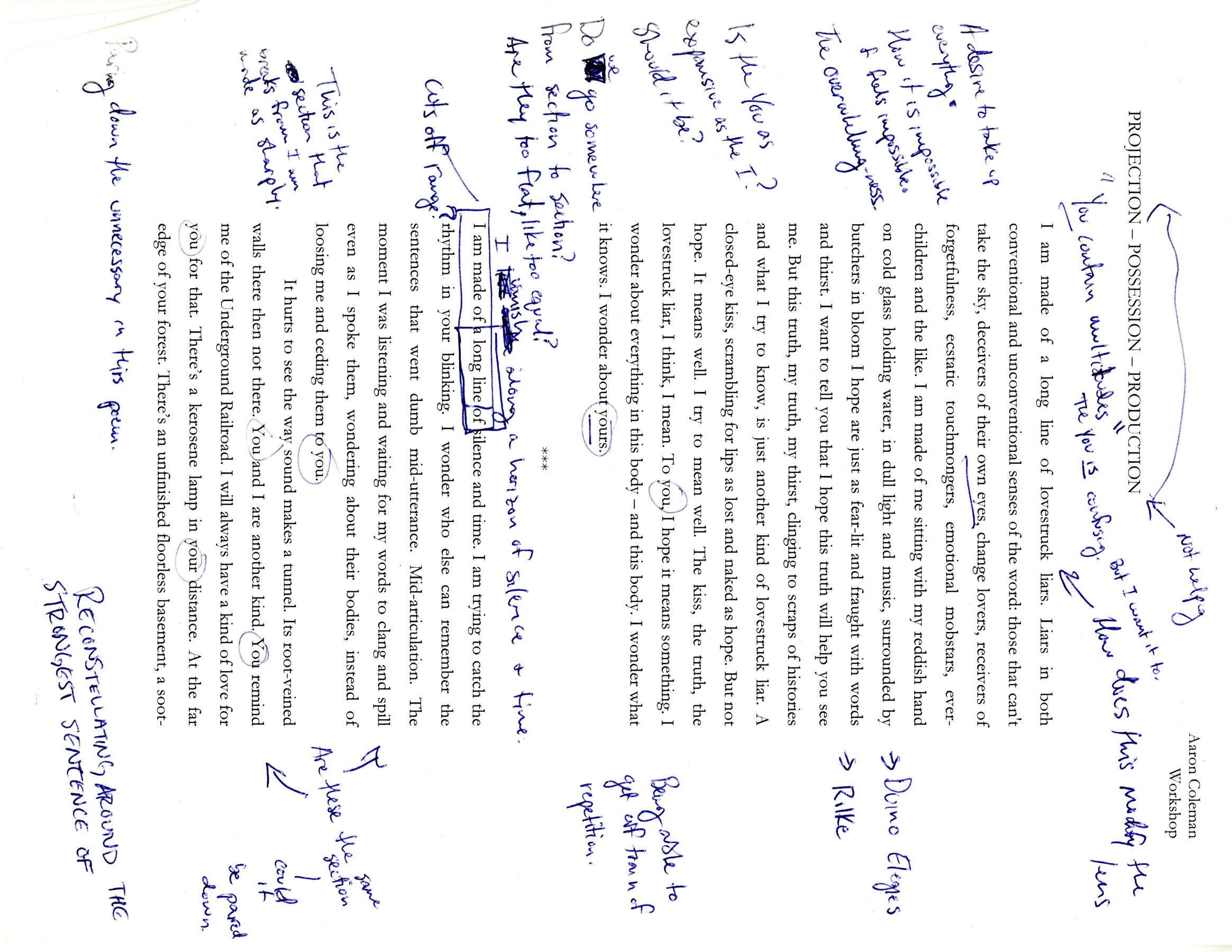 - An early draft of “Very Many Hands” was previously titled “Projection-Possession-Production" and composed as prose in Professor Danielle Dutton’s class, experimenting with genre and hybridity. This poem would go on to be published in Threat Come Close.