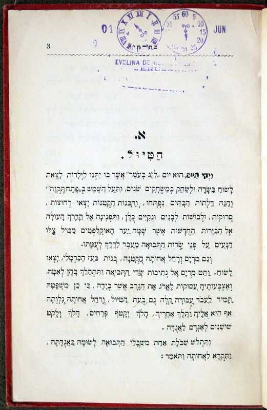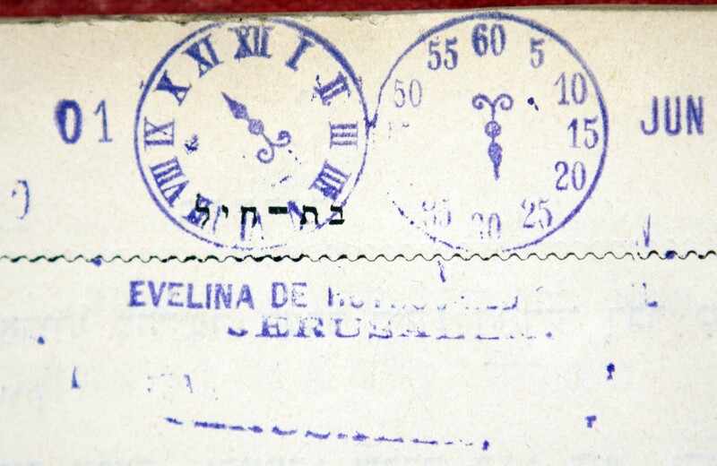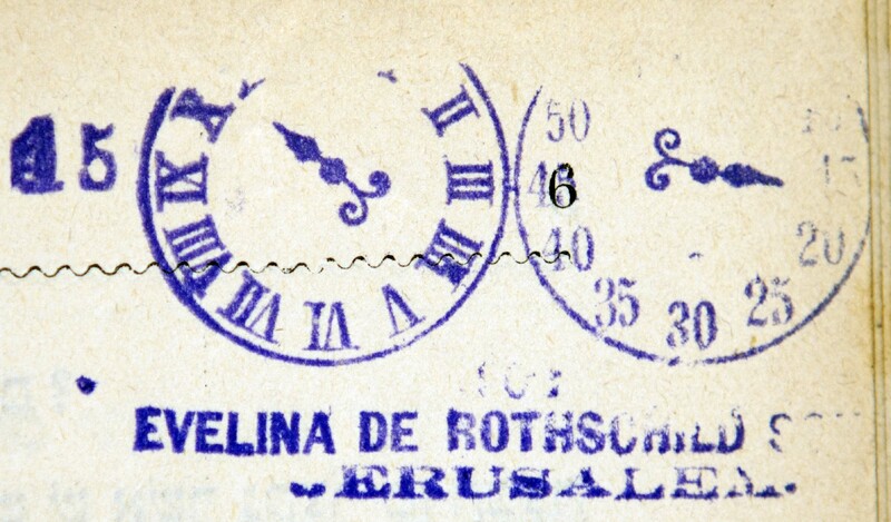 This is the bookstamp of Evelina de Rothschild Girls' School (est. 1854), the first all-girls school in Palestine. It was originally founded by Dr. Albert Cohen in the Old City of Jerusalem and taught the students domestic trades, such as sewing and knitting.