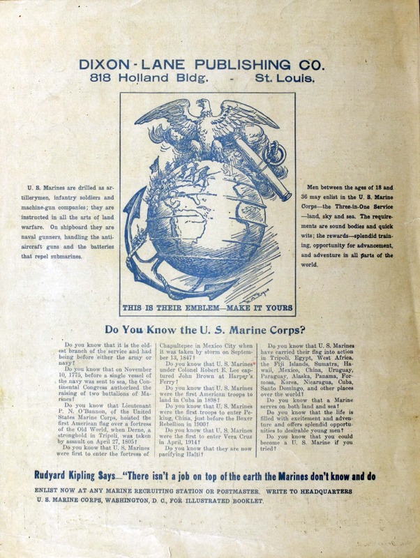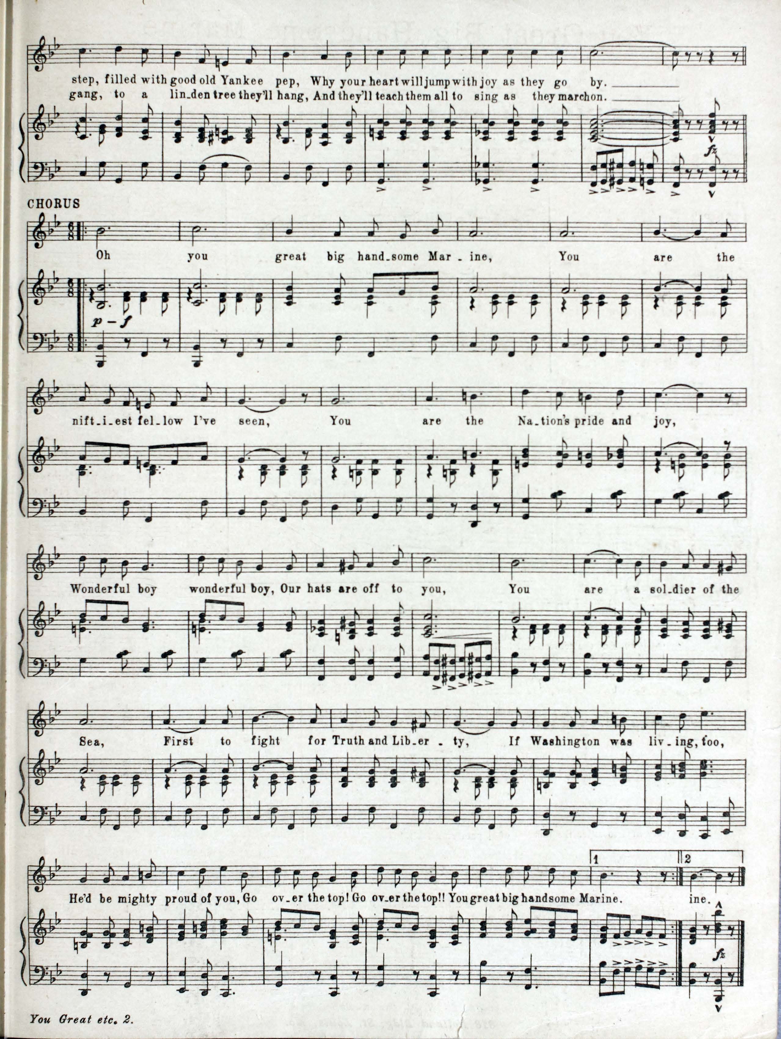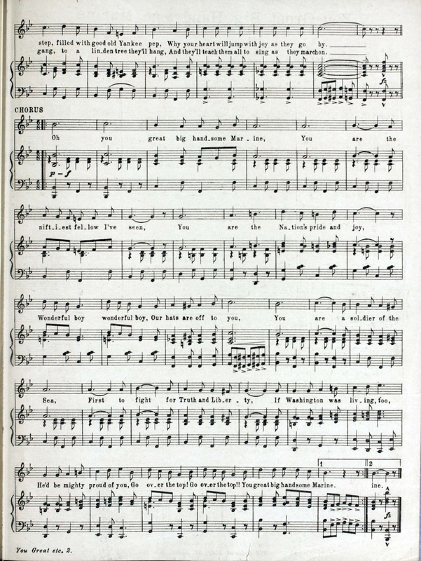 Dixon, Harold. 2000. “You Great Big Handsome Marine [by Harold Dixon]”. St. Louis : published by Dixon-Lane Pub. Co, World War I Sheet Music, accessed February 11, 2026, https://digitalexhibits.library.wustl.edu/s/wwimusic/item/35630