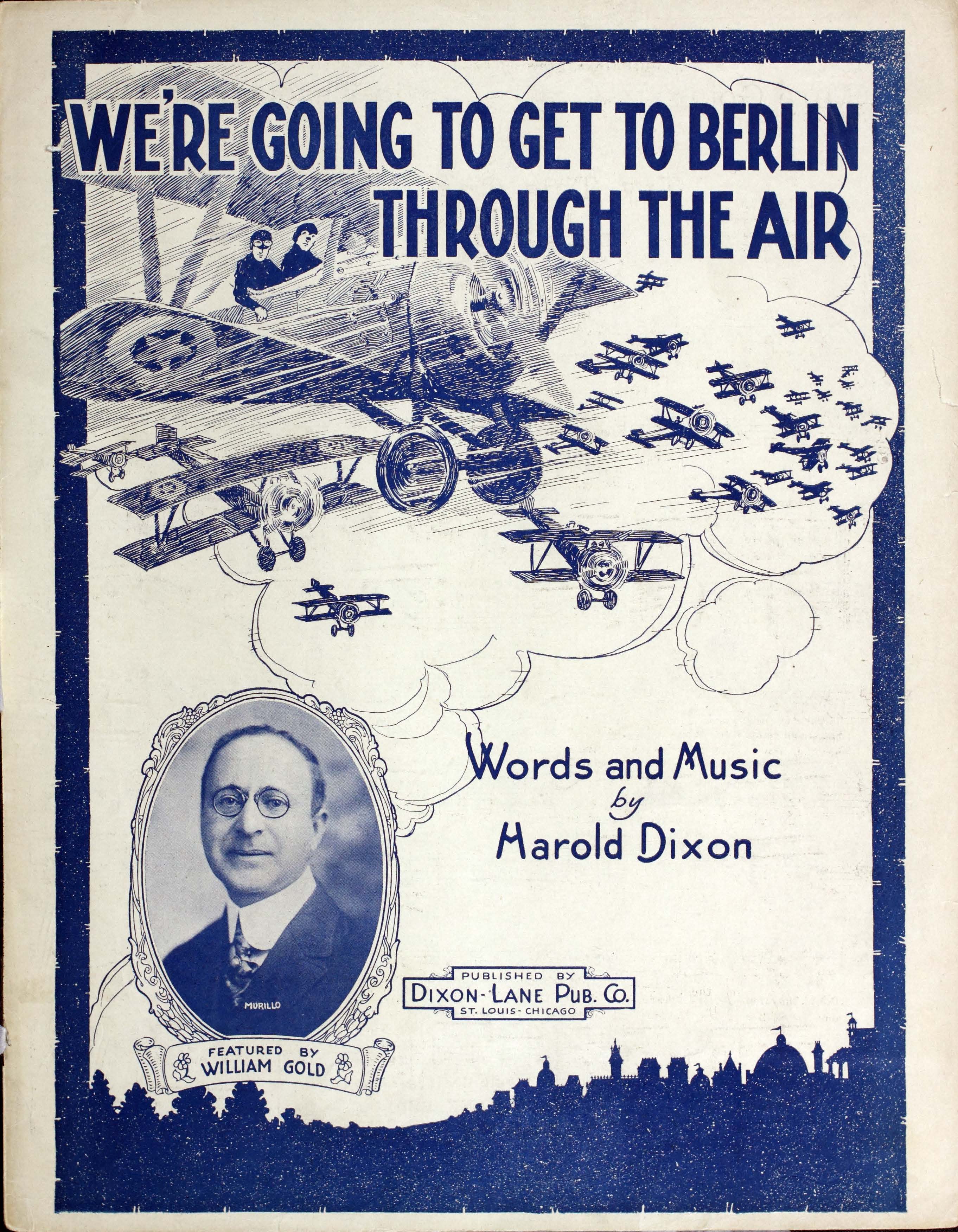 Dixon, Harold. 2000. “We’re Going to Get to Berlin through the Air Words and Music by Harold Dixon”. St. Louis : published by Dixon-Lane, Pub. Co, World War I Sheet Music, accessed February 11, 2026, https://digitalexhibits.library.wustl.edu/s/wwimusic/item/35634