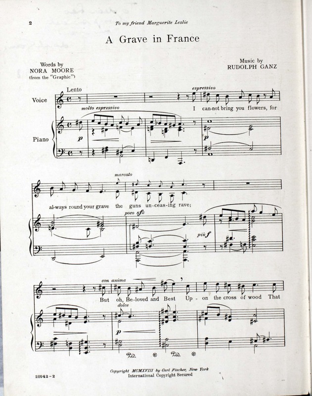 Ganz, Rudolph, 1877-1972. 2000. “A Grave in France Words by Nora Moore ; Music by Rudolph Ganz”. New York (Cooper Square) : Carl Fischer, World War I Sheet Music, accessed February 12, 2026, https://digitalexhibits.library.wustl.edu/s/wwimusic/item/35643