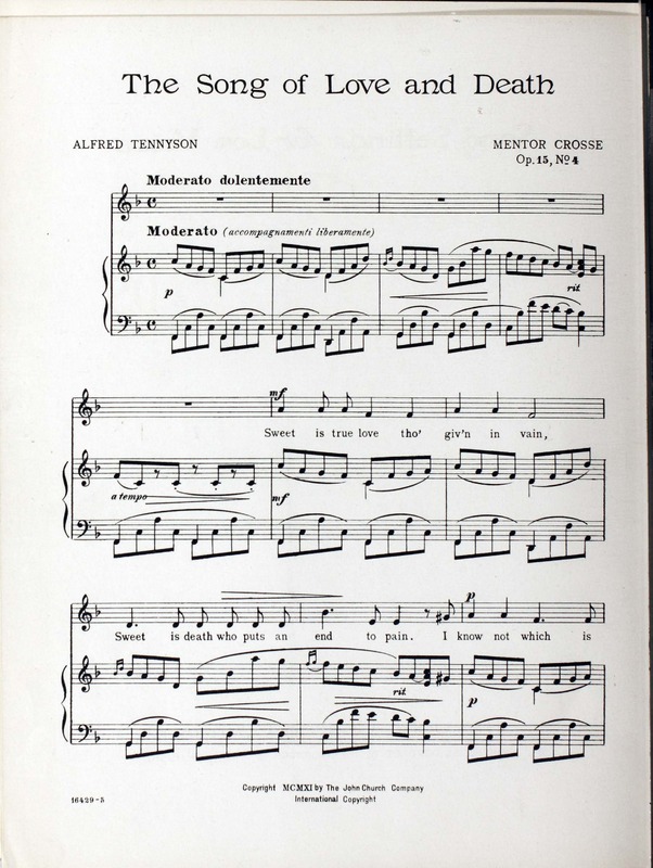 Crosse, Mentor. 2000. “Song Settings for Low Voice By Mentor Crosse”. Cincinnati : John Church Company, World War I Sheet Music, accessed April 26, 2026, https://digitalexhibits.library.wustl.edu/s/wwimusic/item/35646