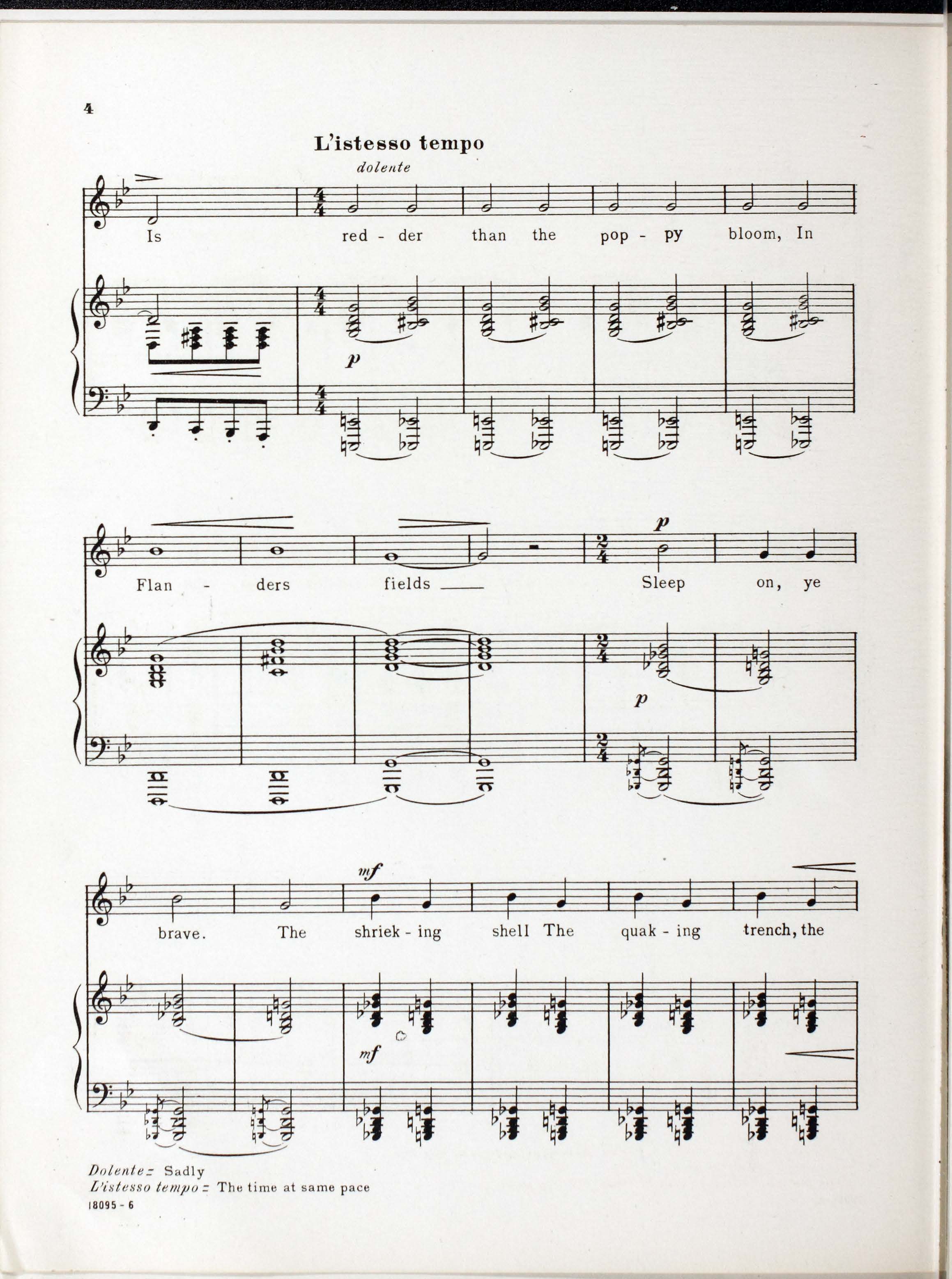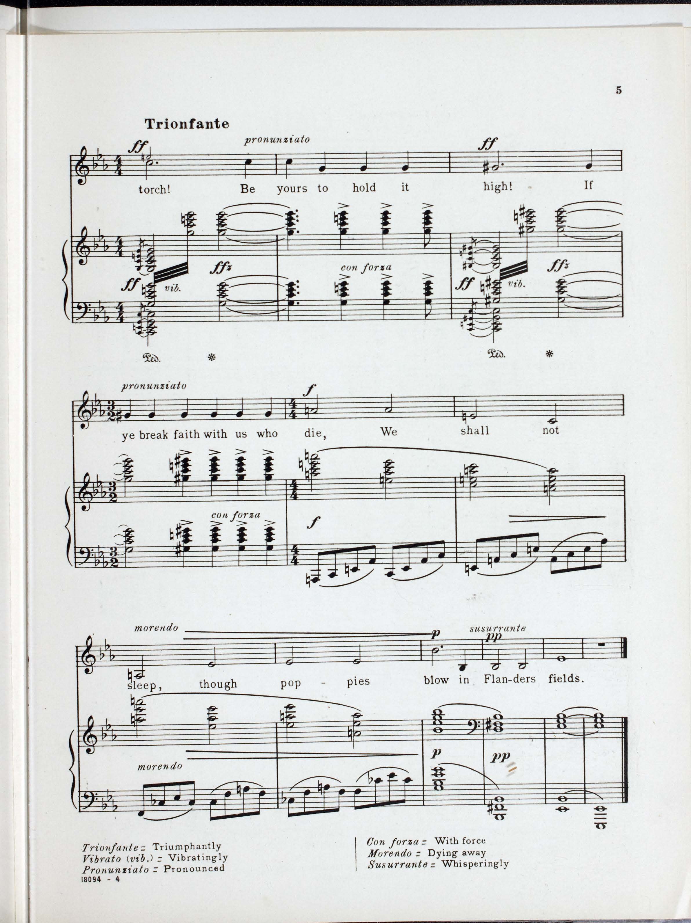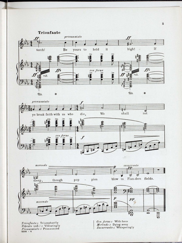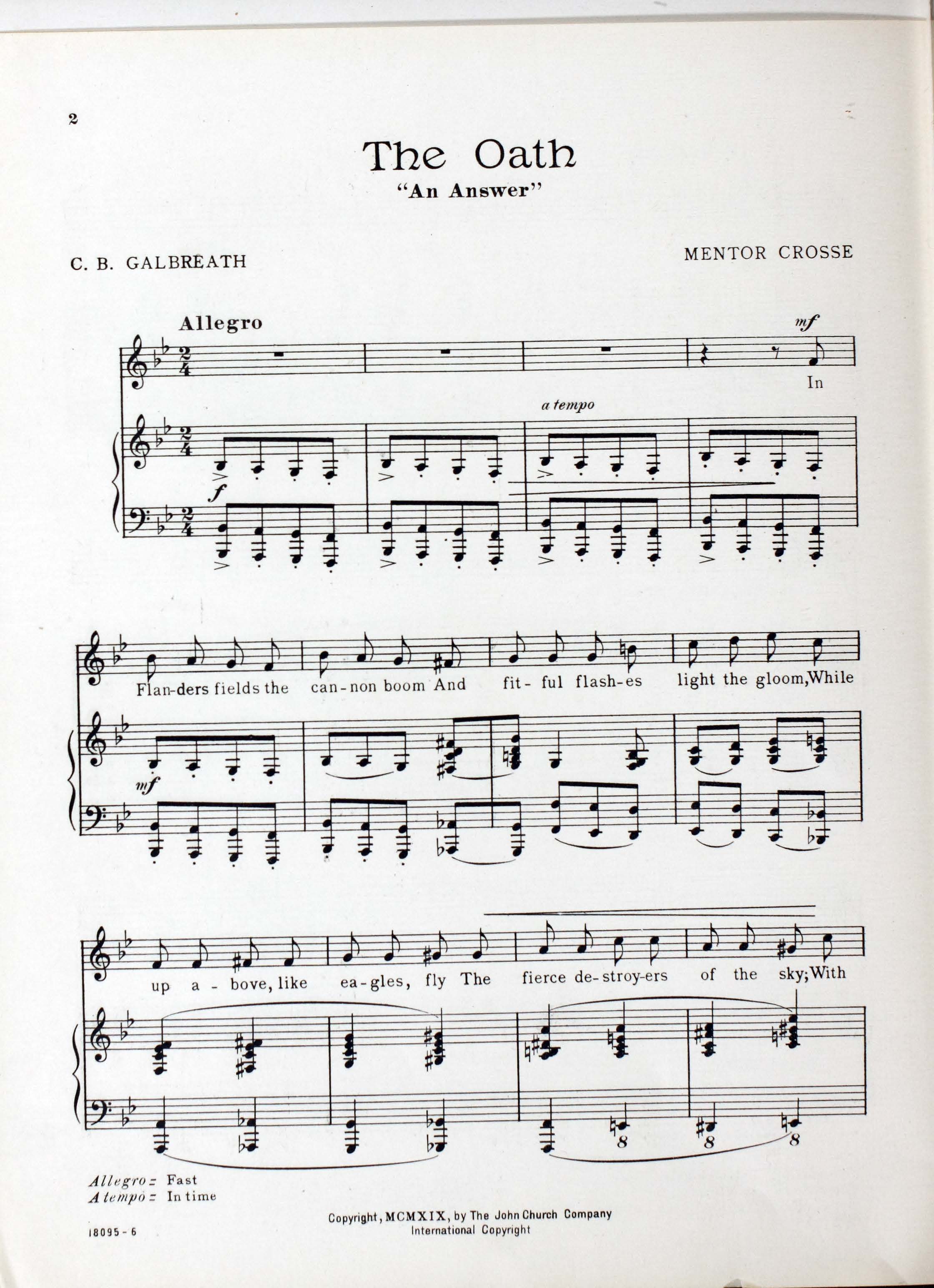 - In Flanders Fields : the trust / by Lieut. Col. John McCrae -- An answer : the oath / by C.B. Galbreath.