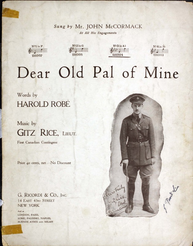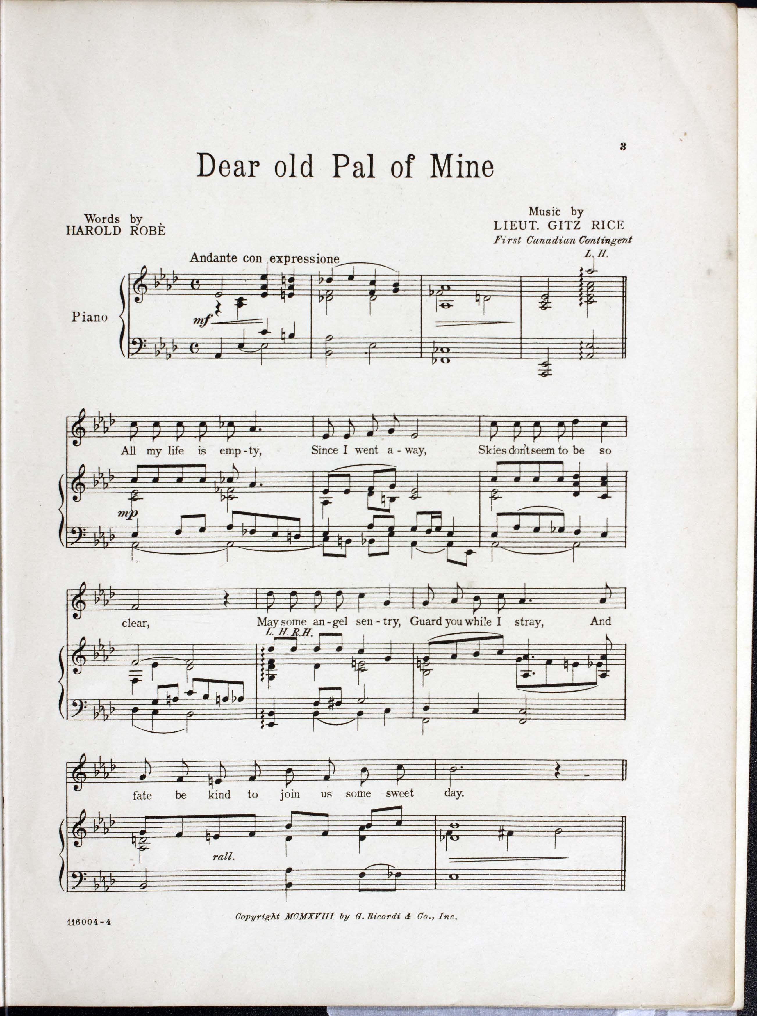 Rice, Gitz. 2000. “Dear Old Pal of Mine Words by Harold Robè ; Music by Gitz Rice, Lieut”. New York (14 East 43rd Street, New York) : G. Ricordi & Co., Inc, World War I Sheet Music, accessed February 12, 2026, https://digitalexhibits.library.wustl.edu/s/wwimusic/item/35652