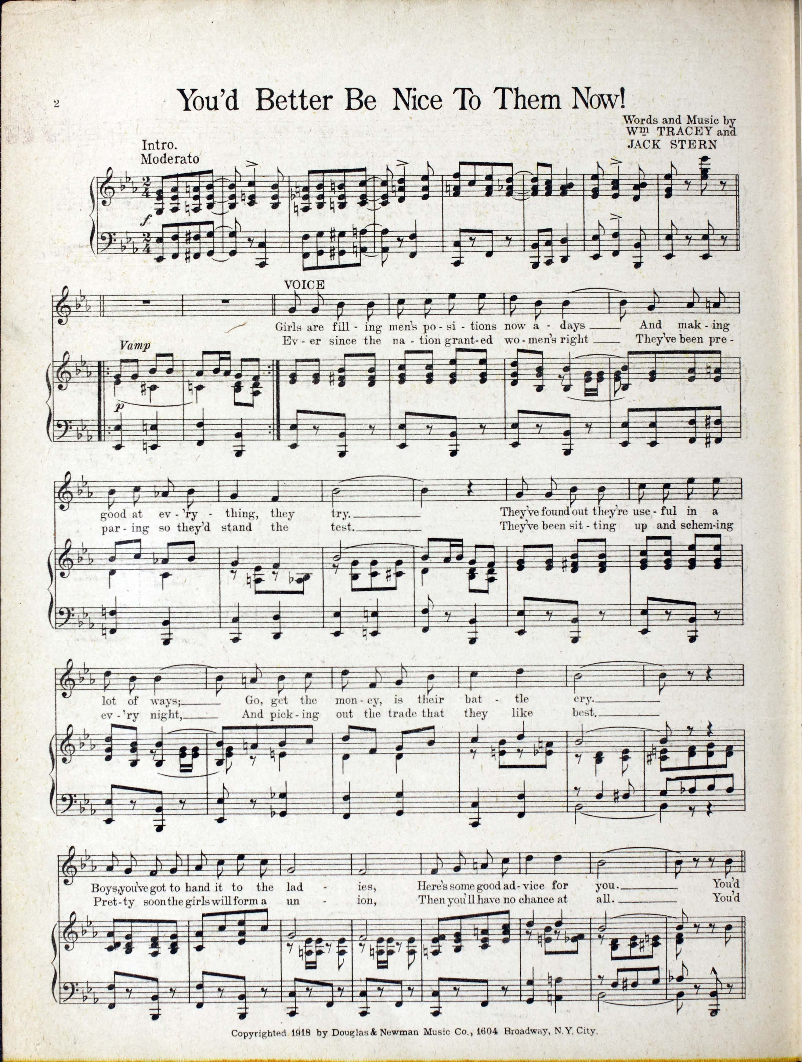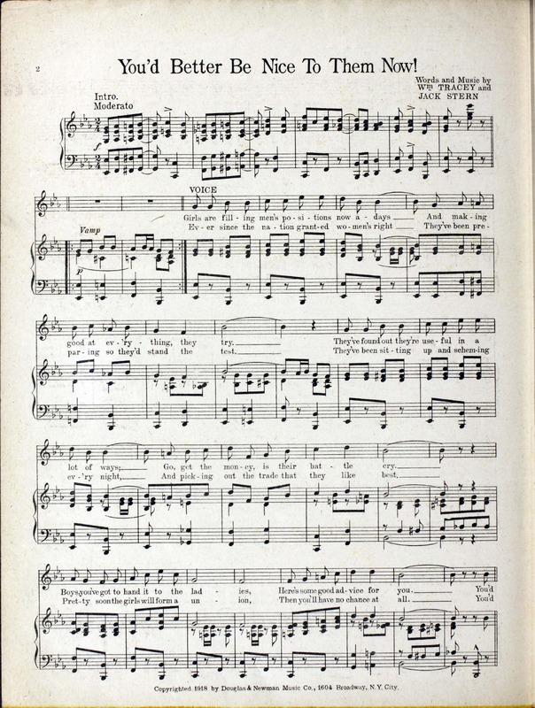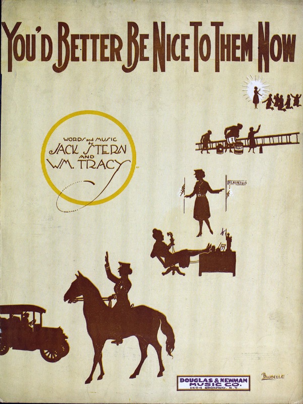 Tracey, William, 1893-1957. 2000. “You’d Better Be Nice to Them Now! Words and Music by Wm. Tracey and Jack Stern”. New York (1604 Broadway) : Douglas & Newman Music Co, World War I Sheet Music, accessed April 26, 2026, https://digitalexhibits.library.wustl.edu/s/wwimusic/item/35658