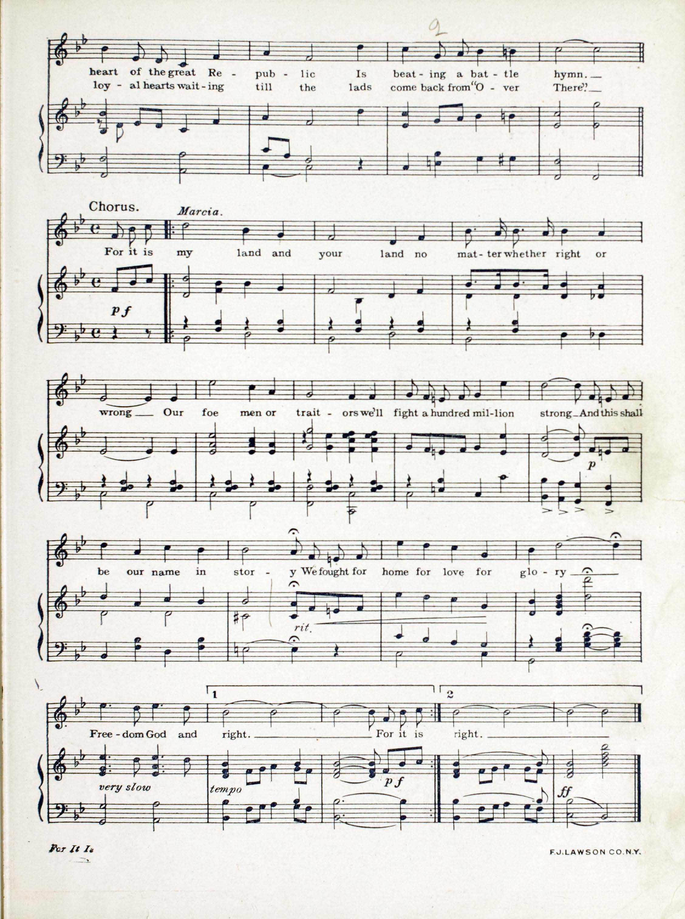 - "F.J. Lawson Co., N.Y." -- At end of music.