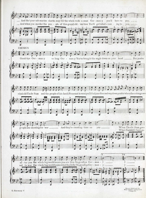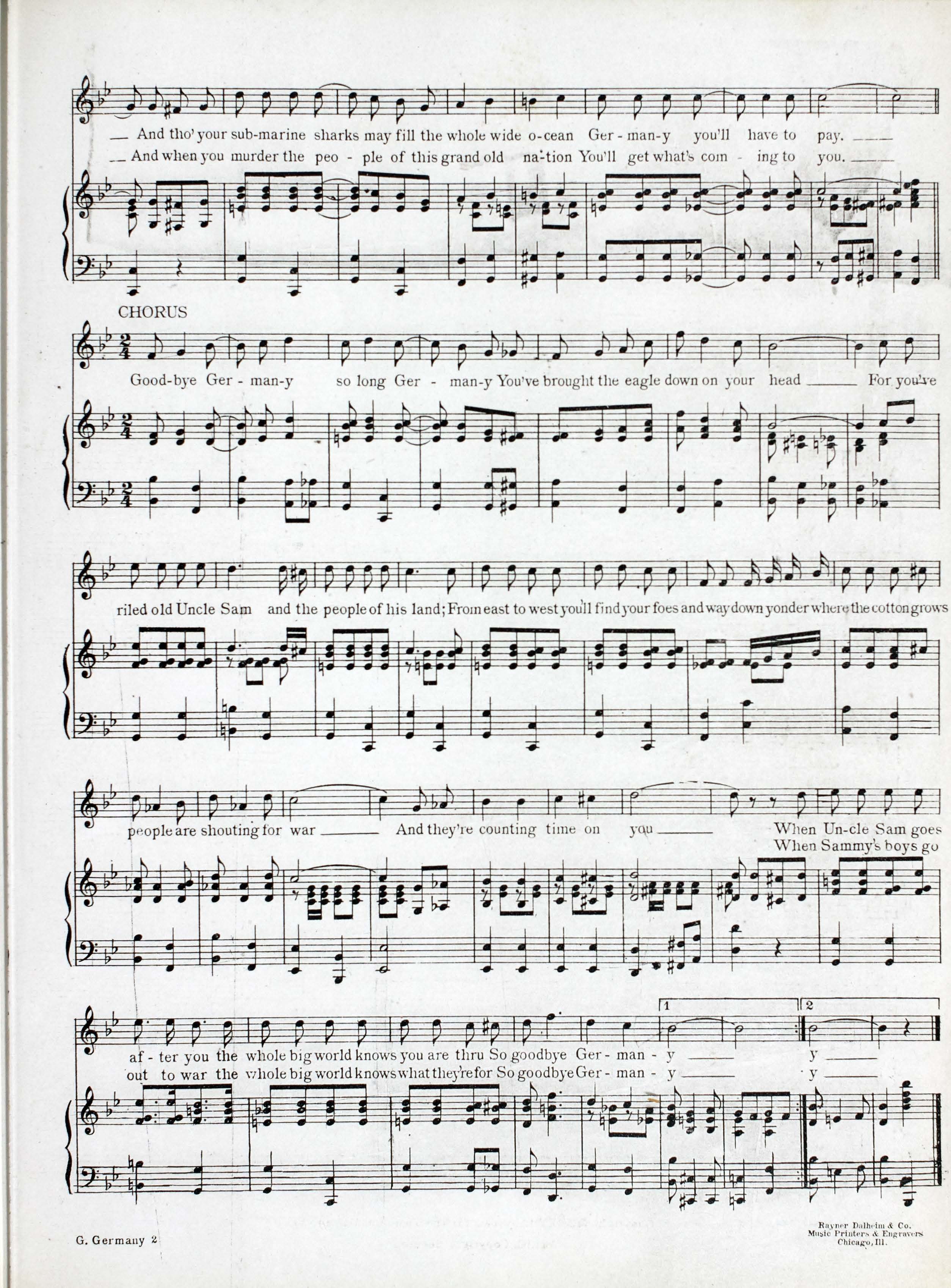 McConnell, J. Edwin. 2000. “Good-Bye Germany By J. Edwin McConnell and Lincoln McConnell”. Chicago (325 Madison Street) : Ted Browne Music Co, World War I Sheet Music, accessed April 26, 2026, https://digitalexhibits.library.wustl.edu/s/wwimusic/item/35669