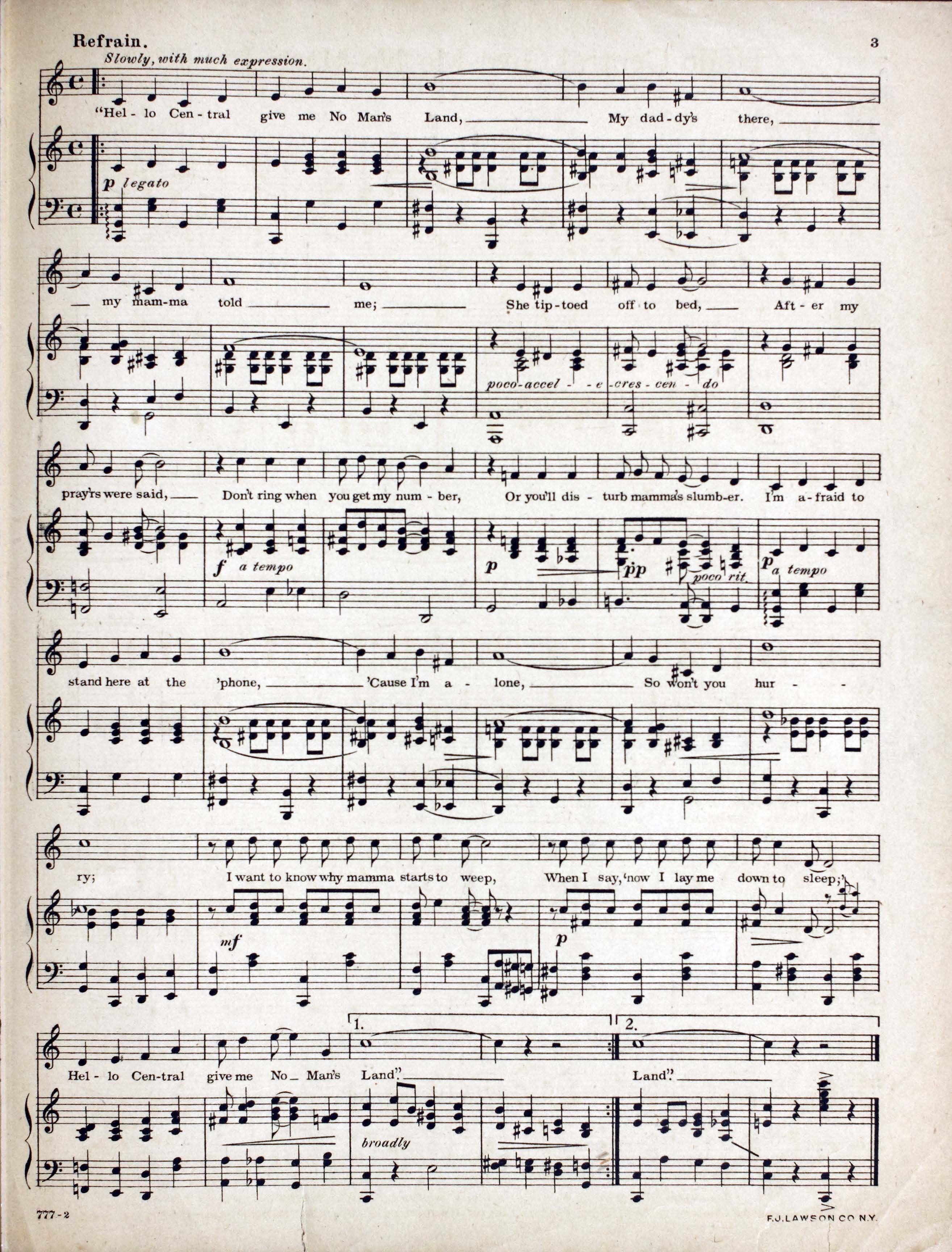 - "F.J. Lawson Co., N.Y." -- At end of music.