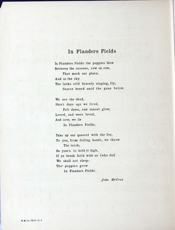 Wells, J. Deane (John Dean). 2000. “In Flanders Fields : Song Words by Lieut. Colonel McCrae ; Music by J. Deane Wells”. Boston : The Boston Music Co, World War I Sheet Music, accessed February 13, 2026, https://digitalexhibits.library.wustl.edu/s/wwimusic/item/35966