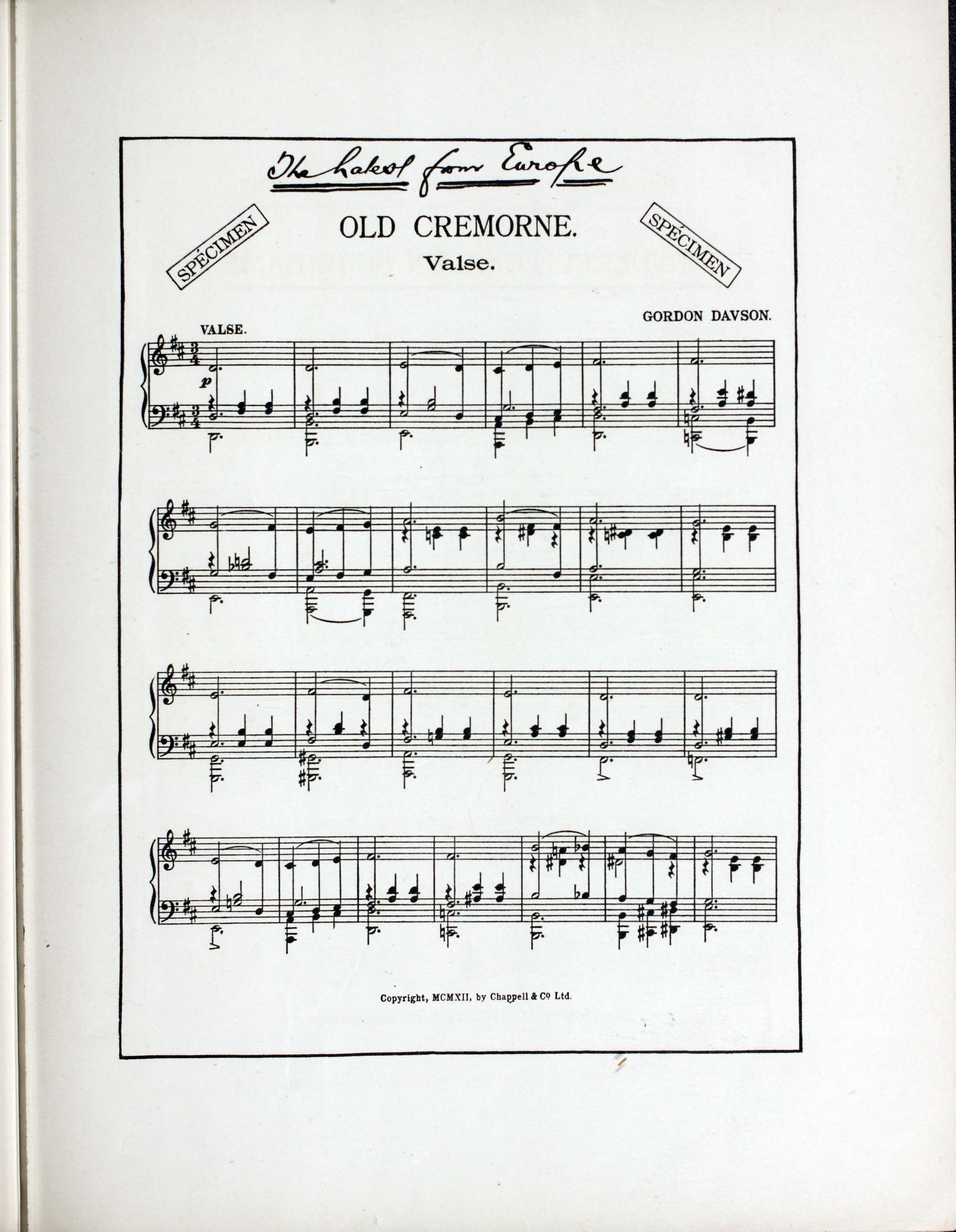 - New York (41 East 34th St., New York) : Chappell & Co., Ltd. ; London (2 & 3 Arthur St., W.C., London, Eng.) : B. Feldman & Co.