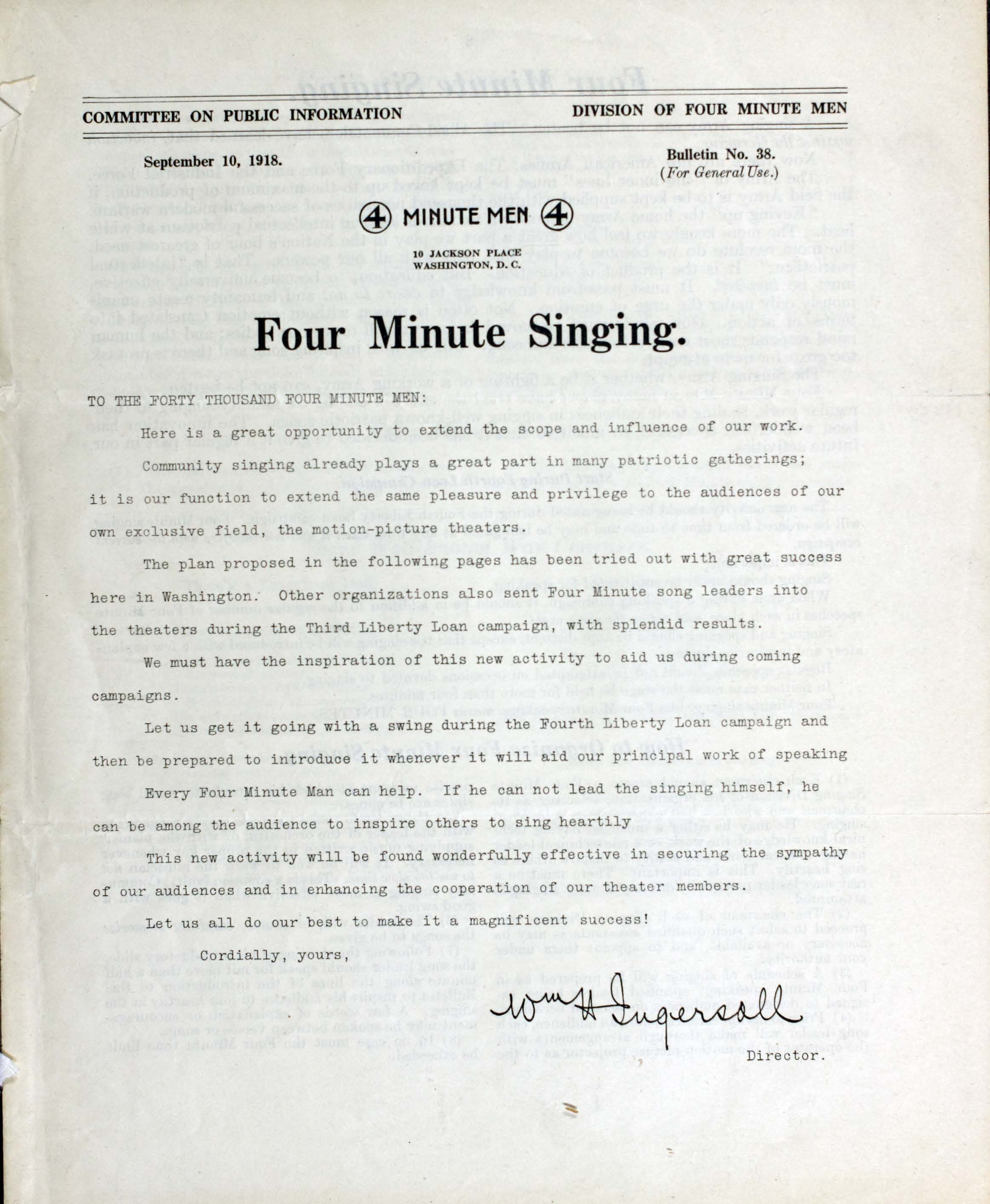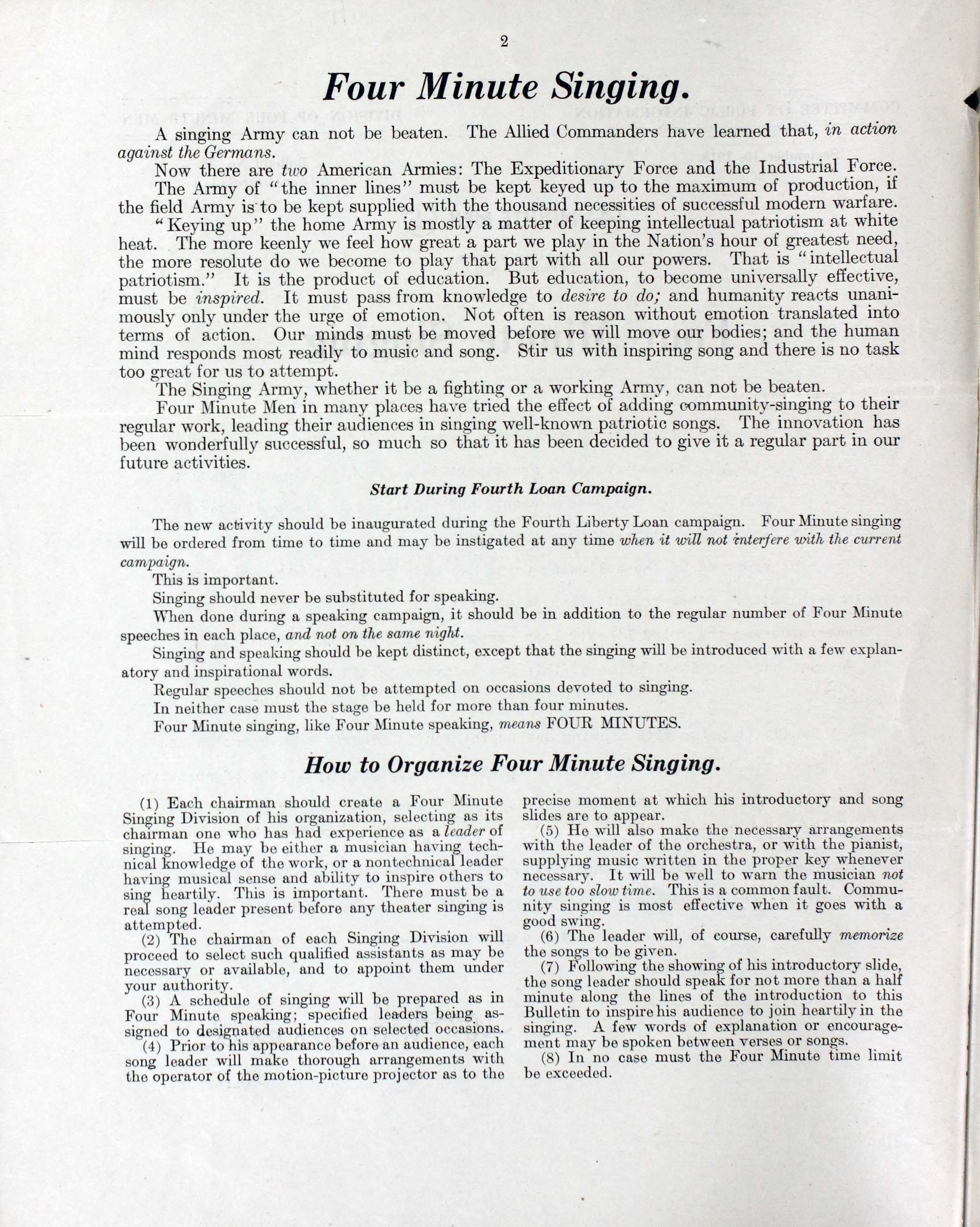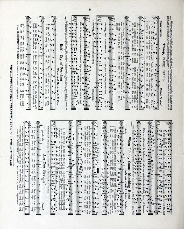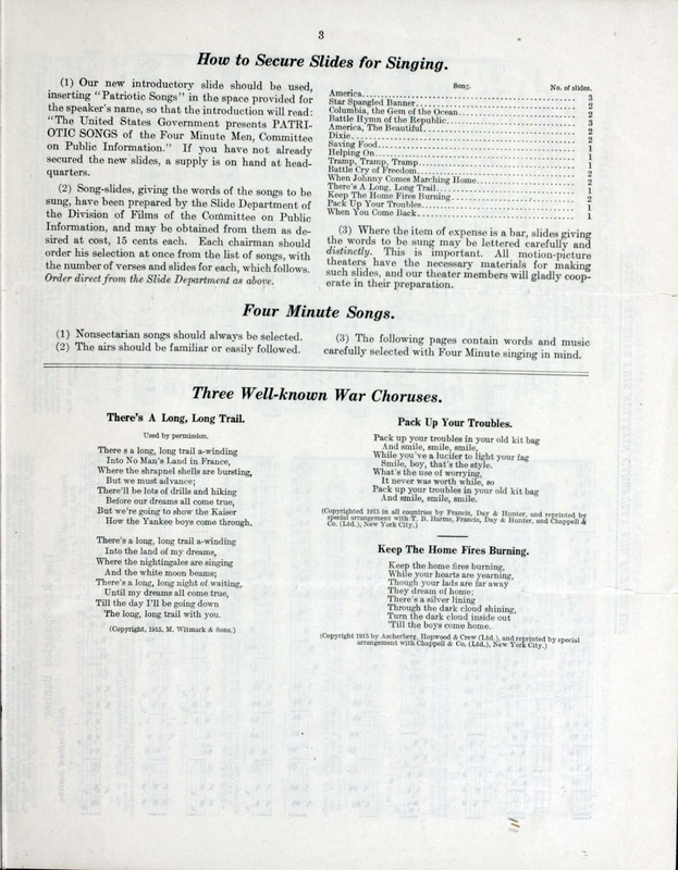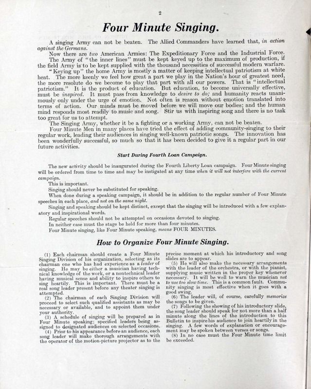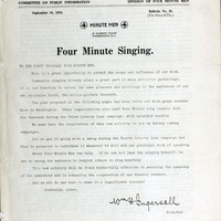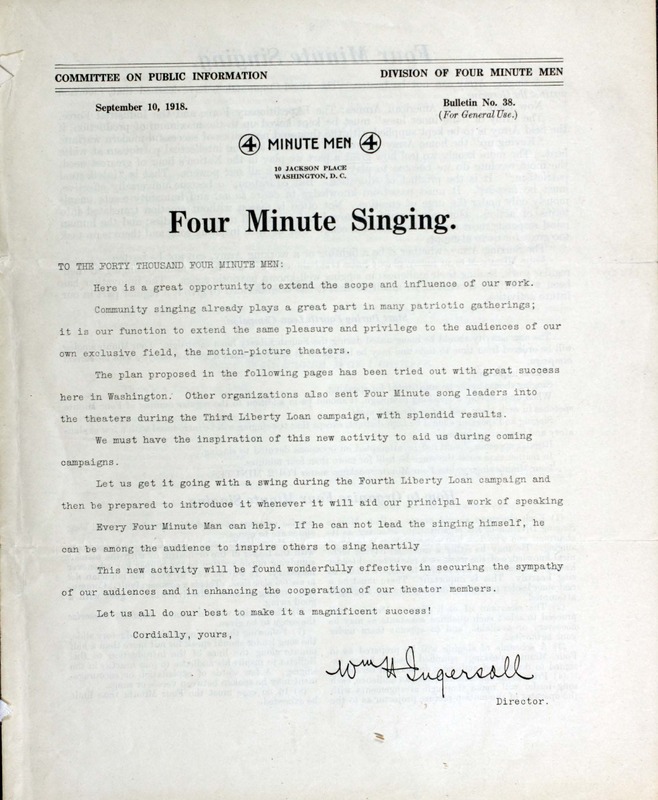 “Four-Minute Singing”. 1917. Washington, D.C. : Committee on Public Information, Division of Four Minute Men, World War I Sheet Music, accessed February 11, 2026, https://digitalexhibits.library.wustl.edu/s/wwimusic/item/35996