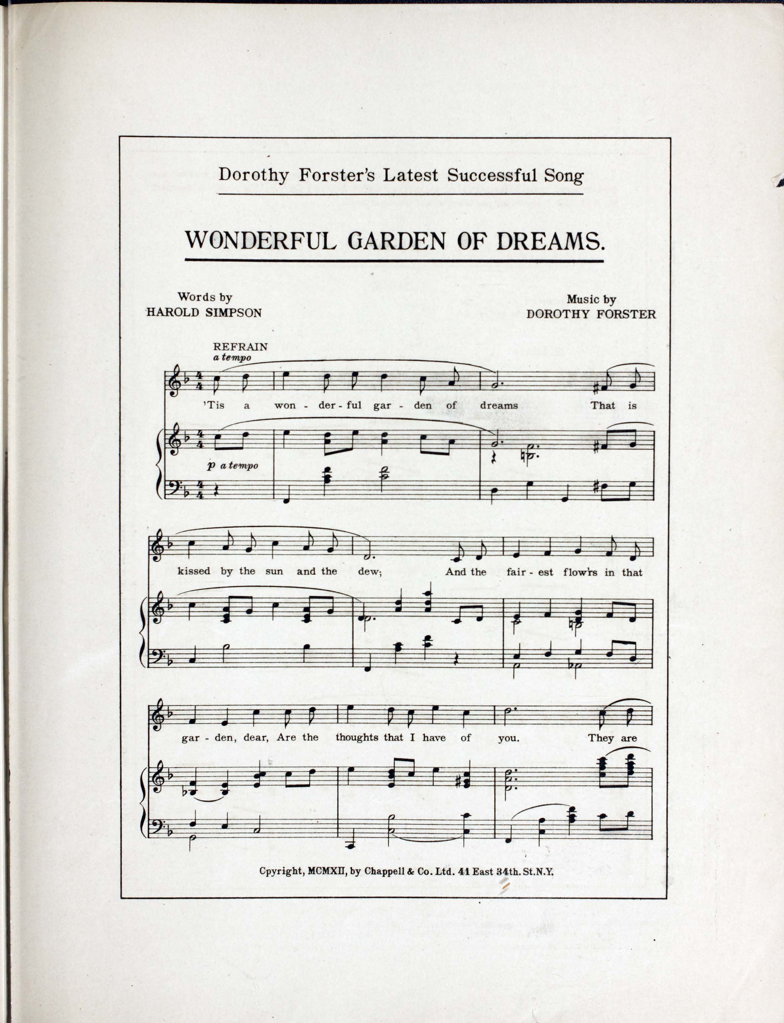- New York (41 East 34th Street) : for the United States of America and Canada, Chappell & Co., Ltd.