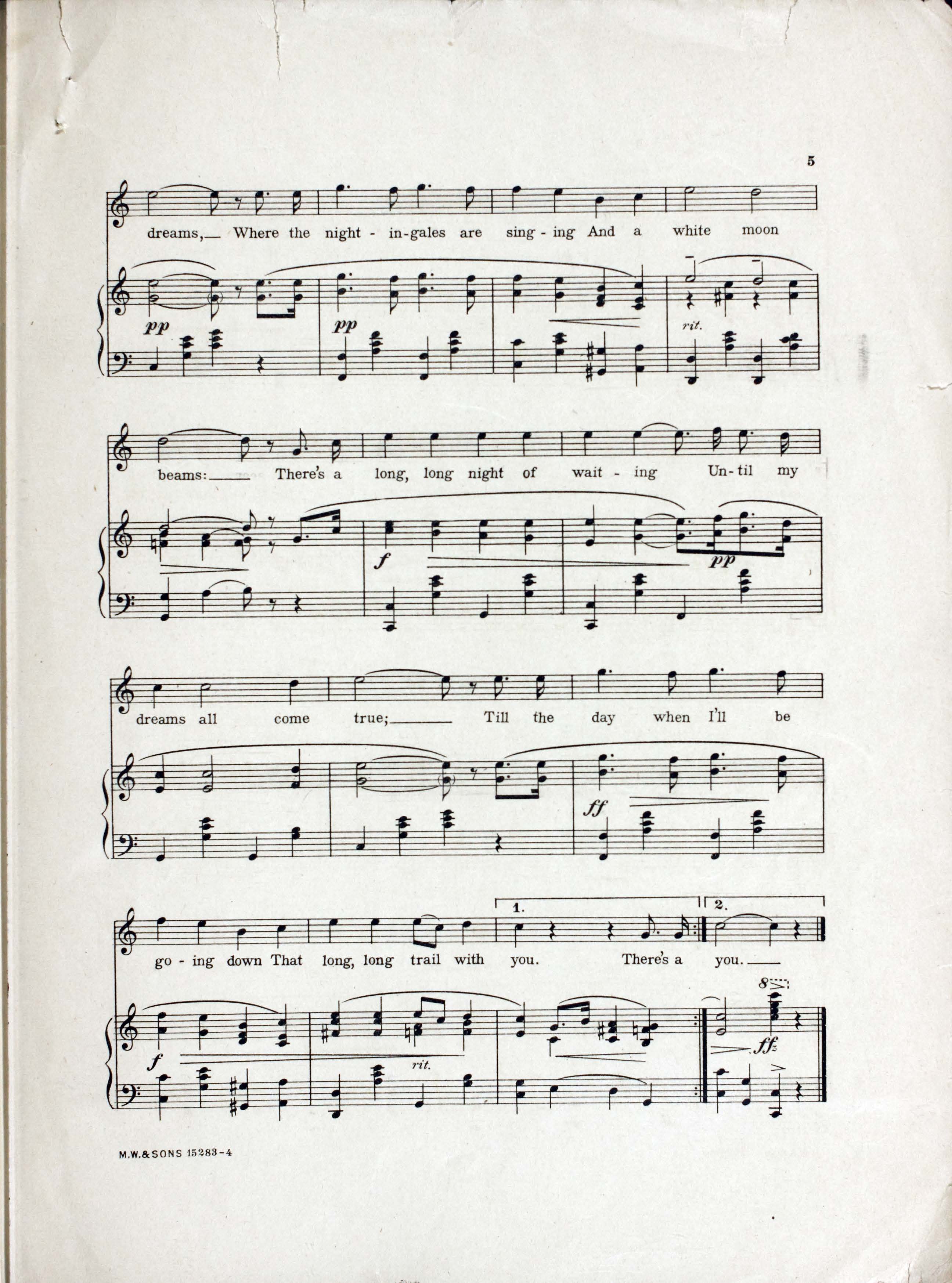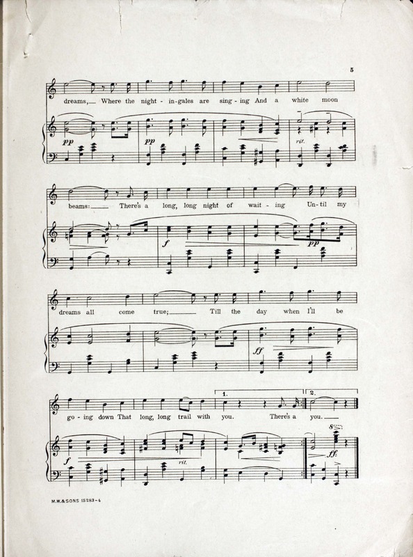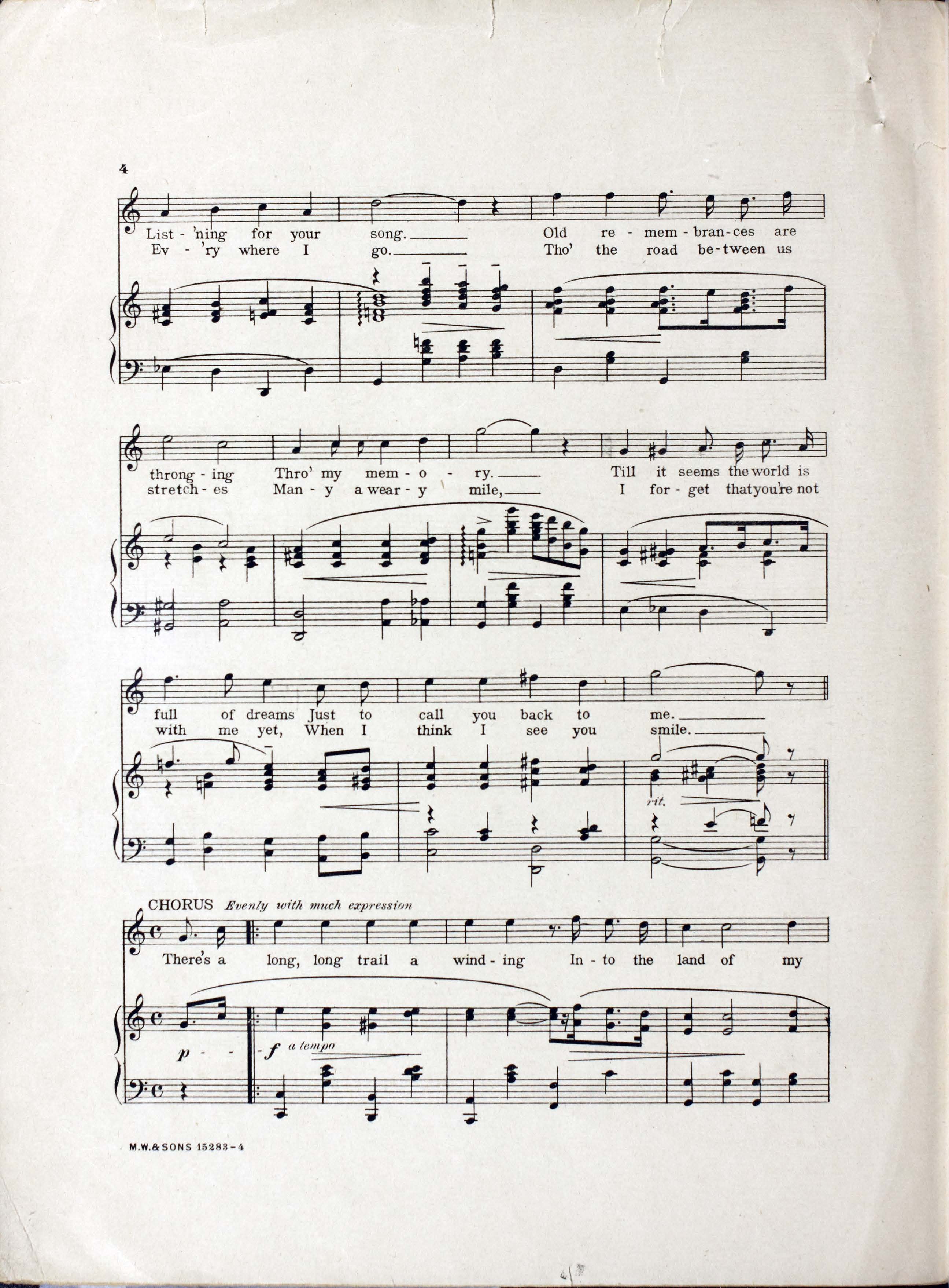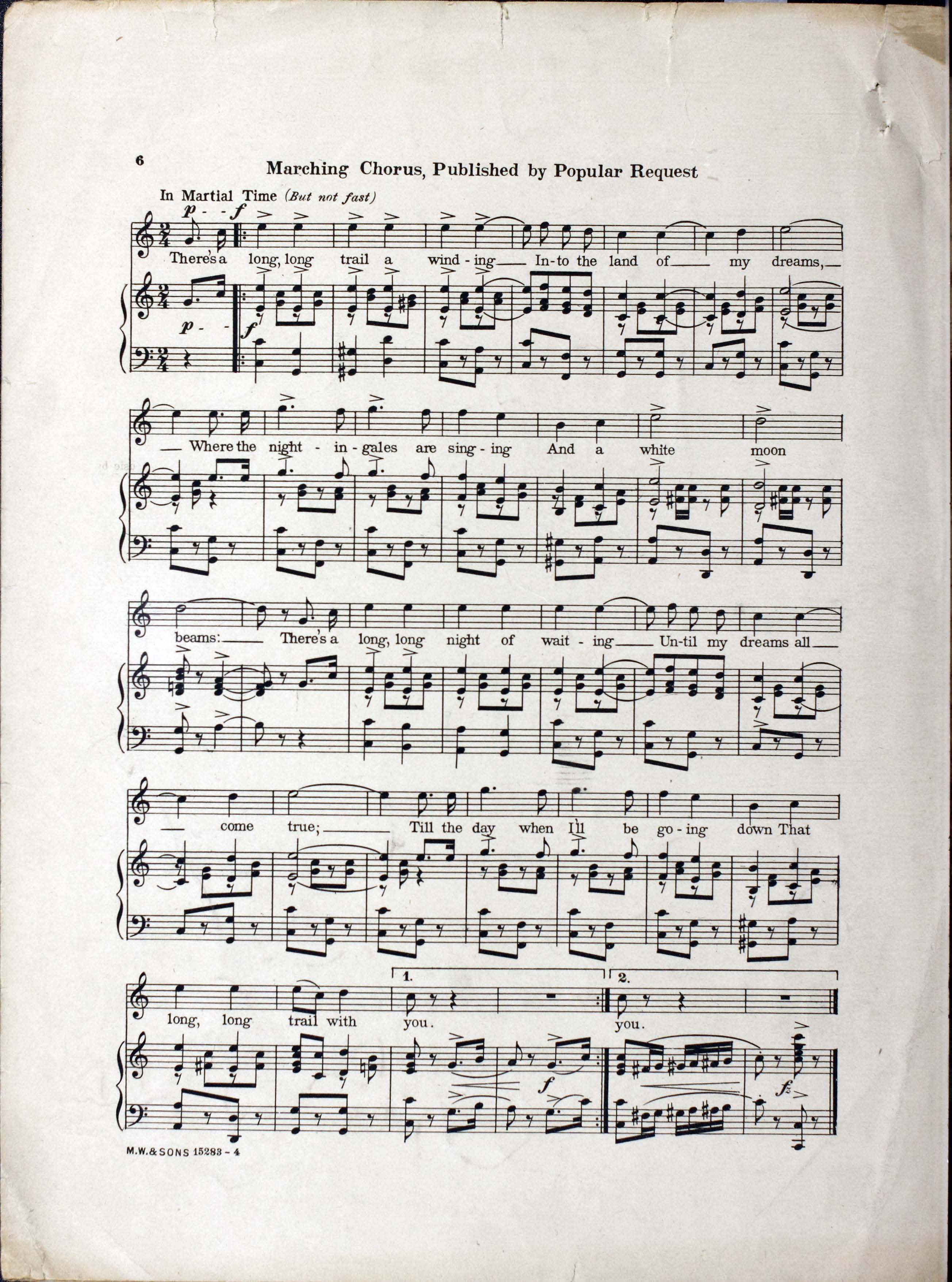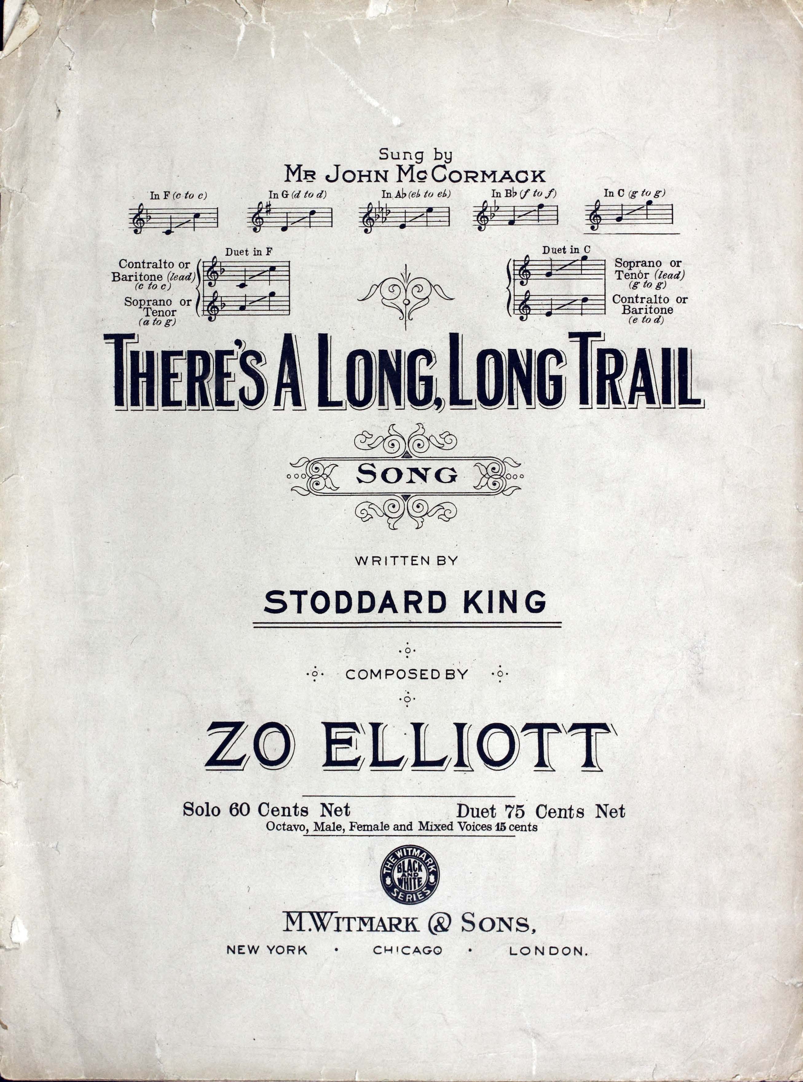 Elliott, Zo, 1891-1964. 2000. “There’s a Long, Long Trail : Song Written by Stoddard King ; Composed by Zo Elliott”. New York : M. Witmark & Sons, World War I Sheet Music, accessed April 3, 2026, https://digitalexhibits.library.wustl.edu/s/wwimusic/item/36004