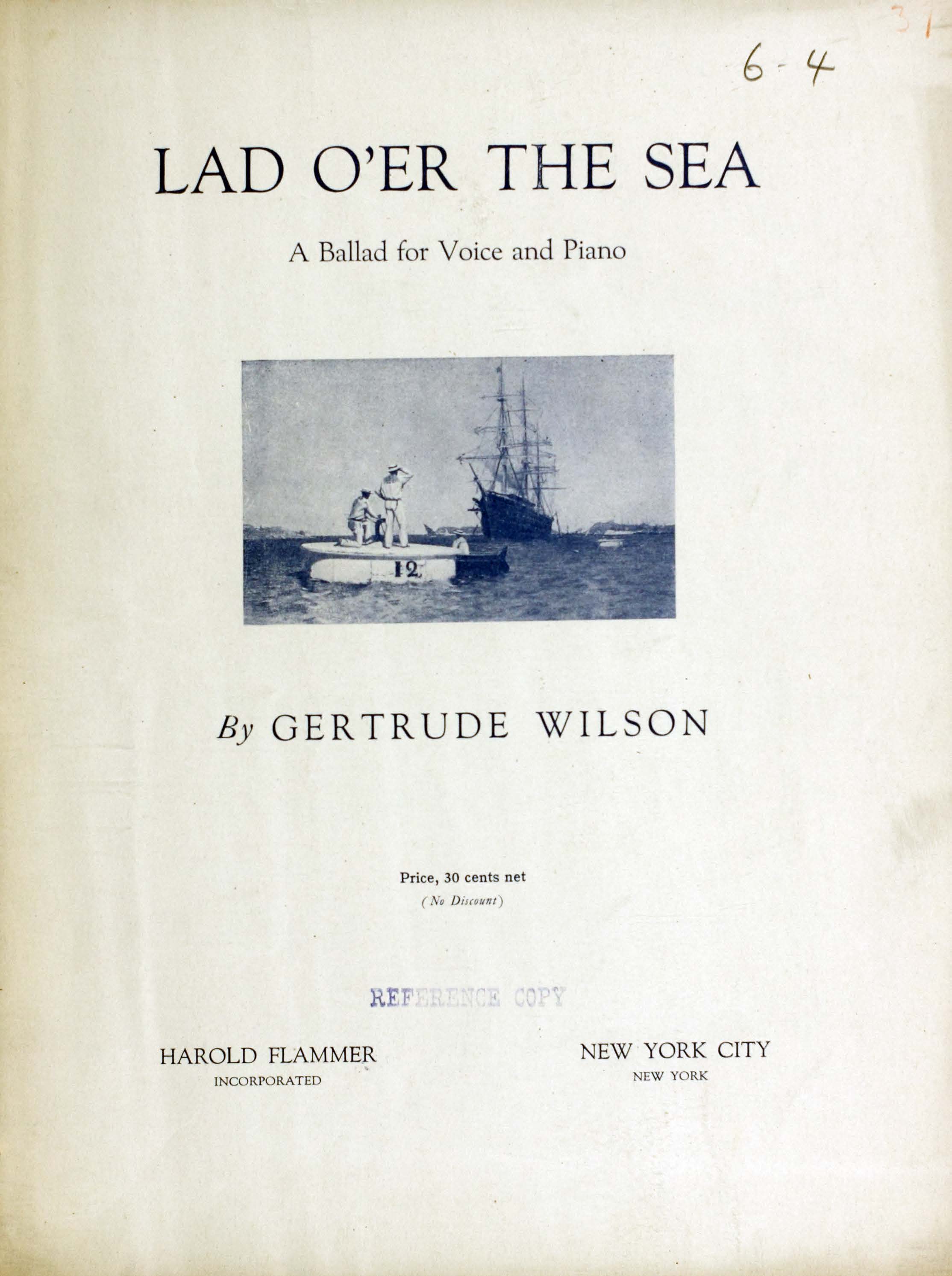 - Lad o'er the sea : a ballad for voice and piano / by Gertrude Wilson.